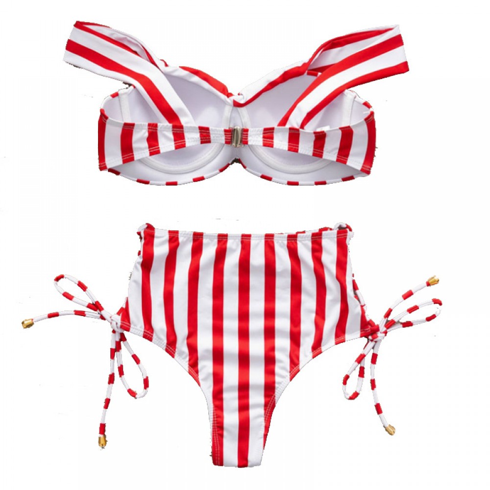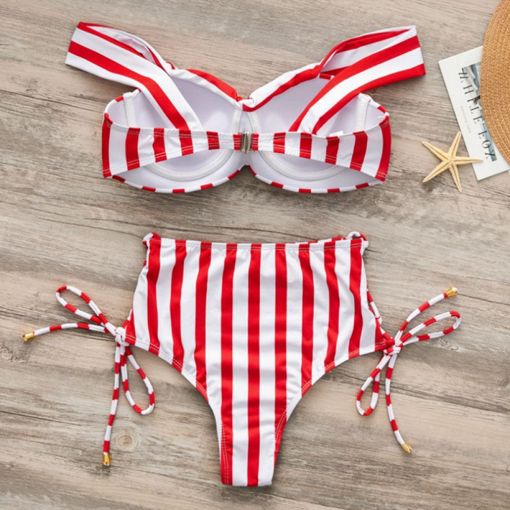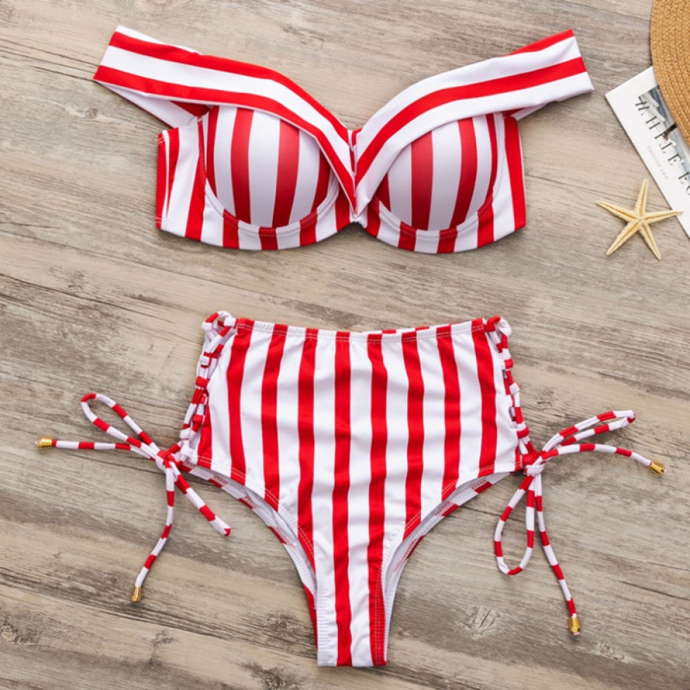 New Bikini Women's Striped Shoulder Bag High Waist Seaside Split