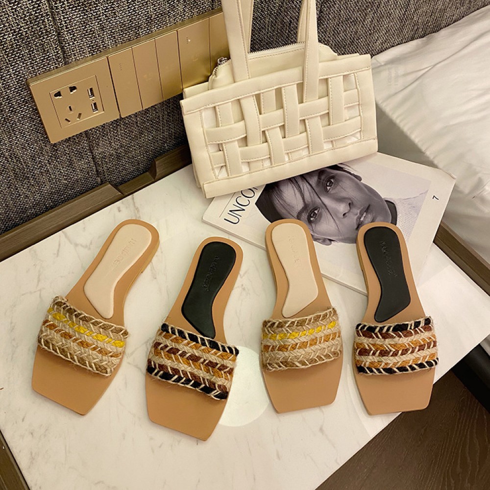 New Bohemian word woven hemp rope flat bottom open toe lazy cool half slippers