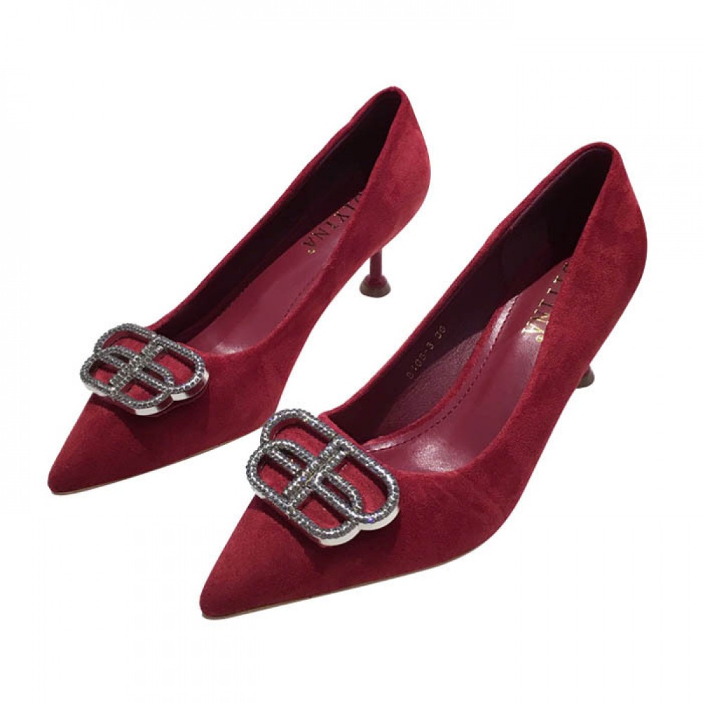 New fashion pointed rhinestone women's shoes work shoes wild suede shallow mouth foot OL single shoes