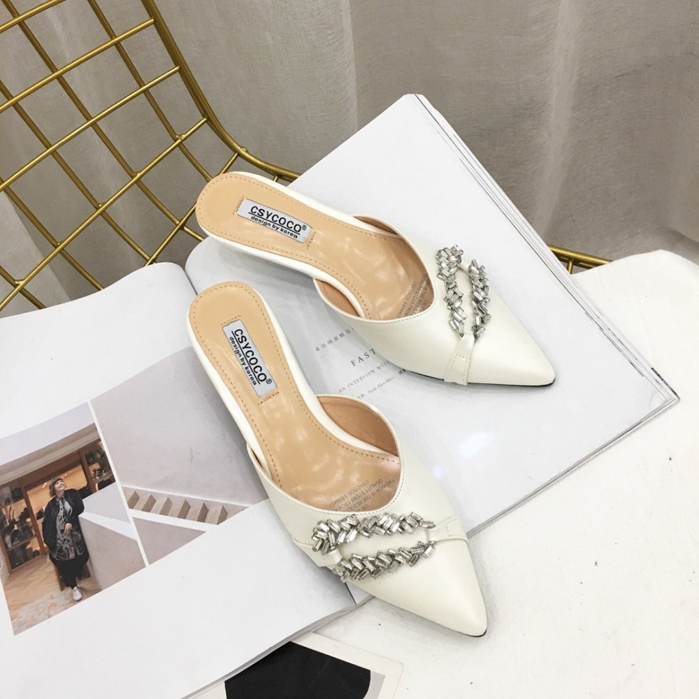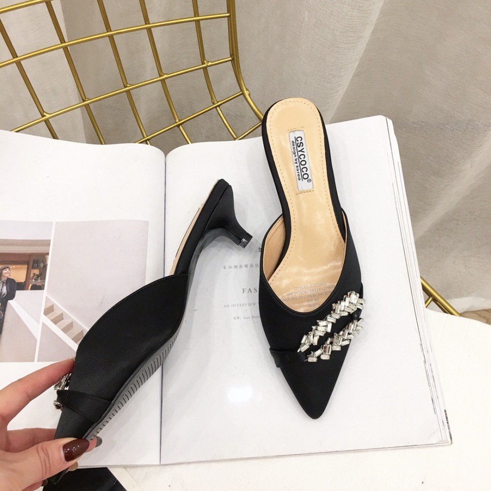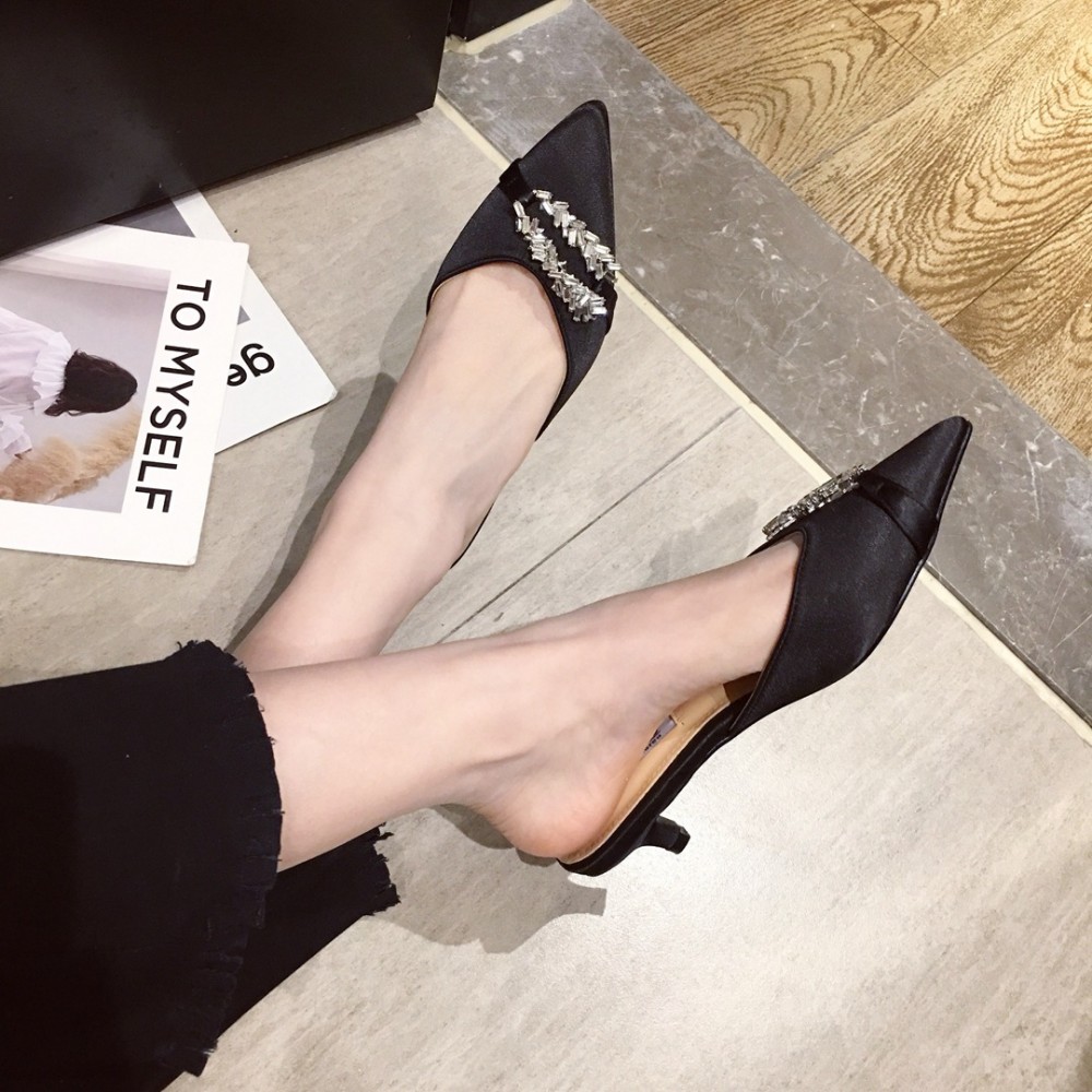New fashion pointed thin medium heel OL rhinestone semi-toe-head drag
