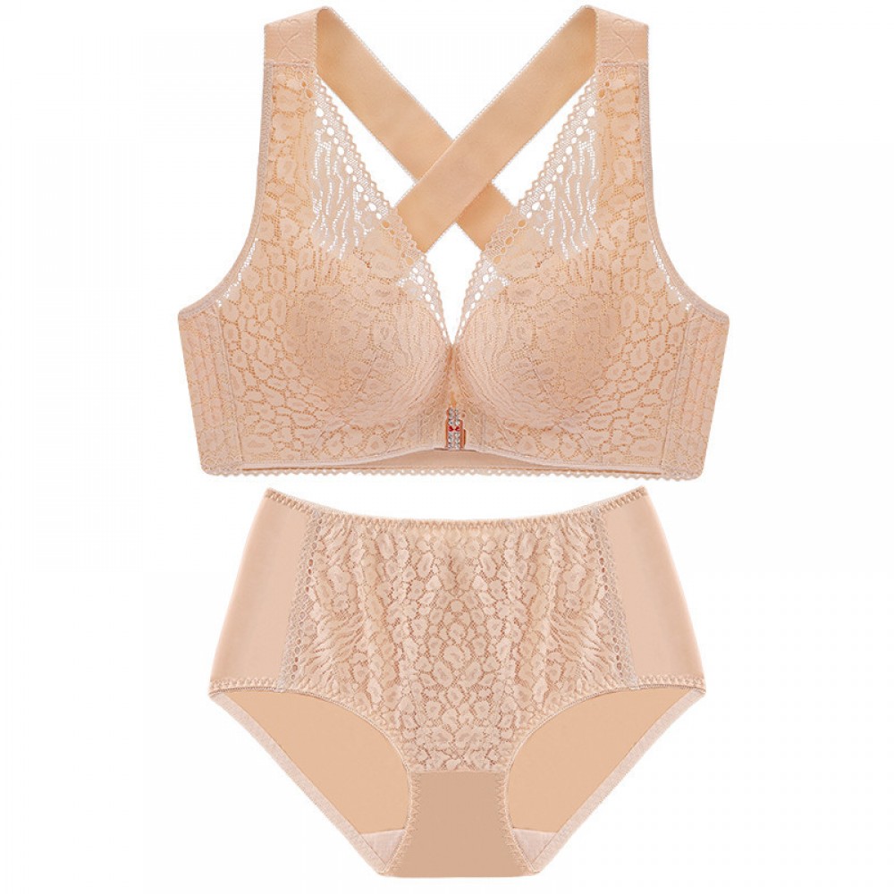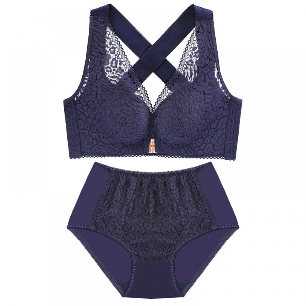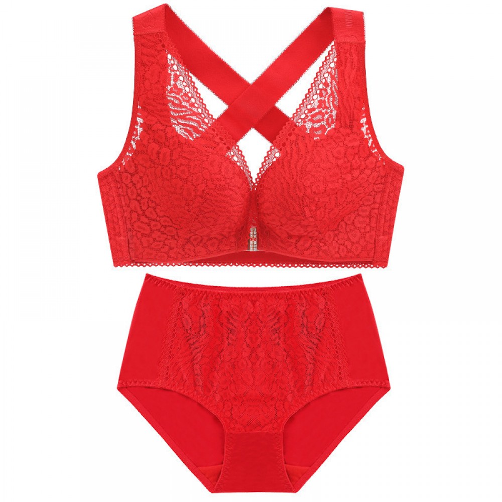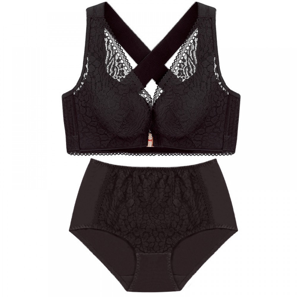 New front buckle vest style large size bra set cross beauty back gather bra adjustment type push up lingerie