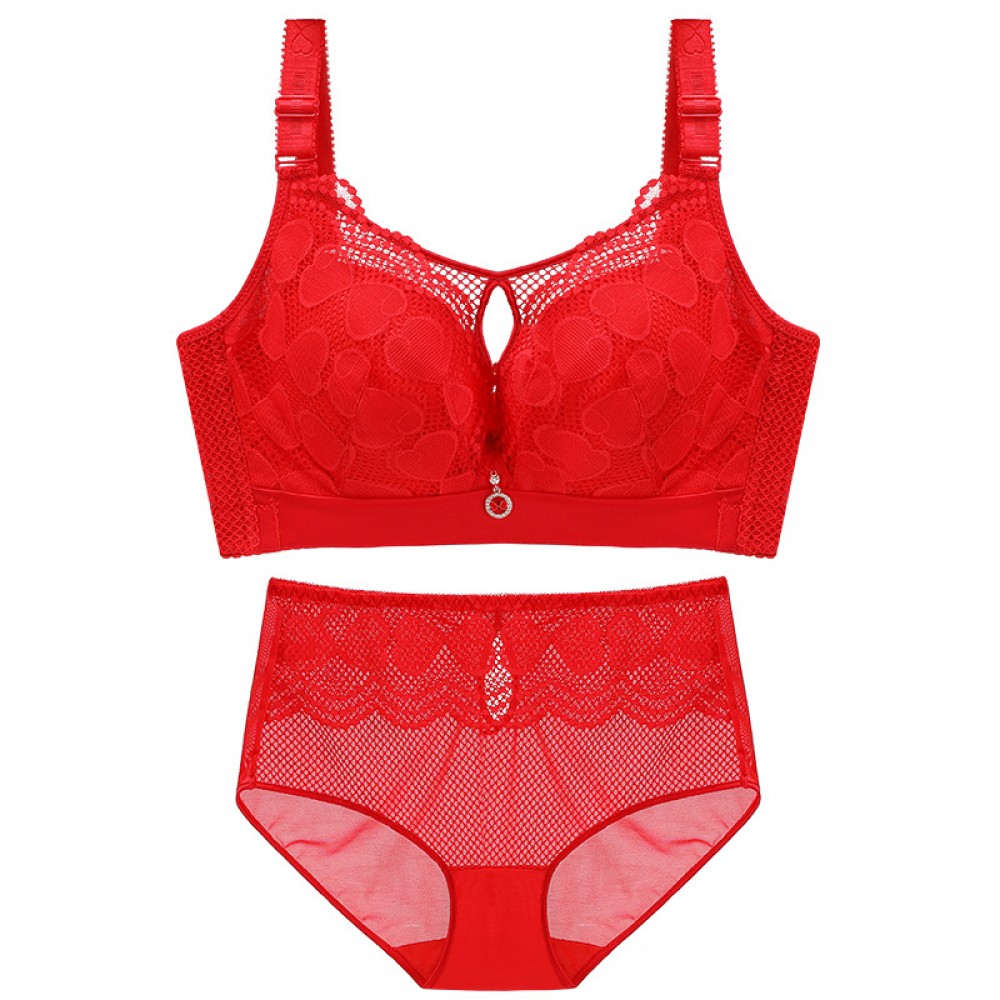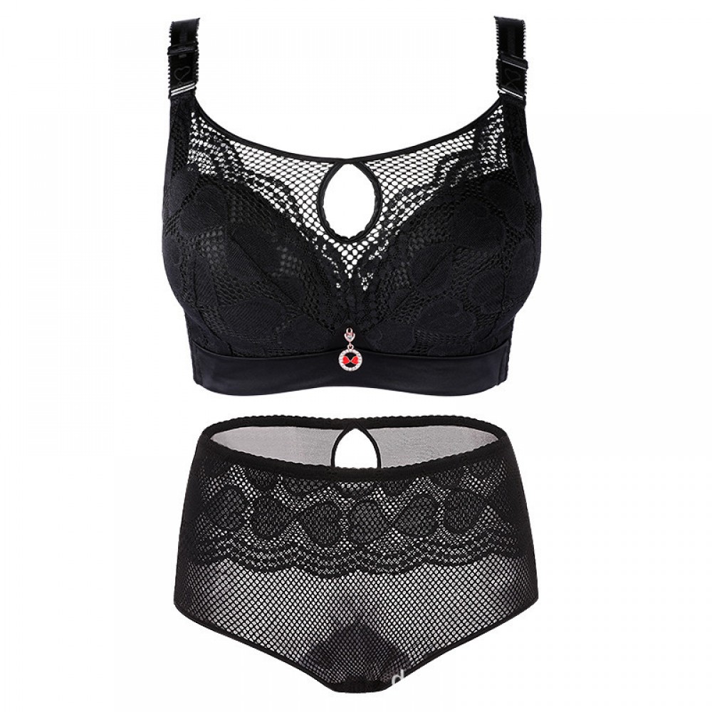 New lace-free steel ring sexy large size bra set thin section fat mm gather adjustment type underwear