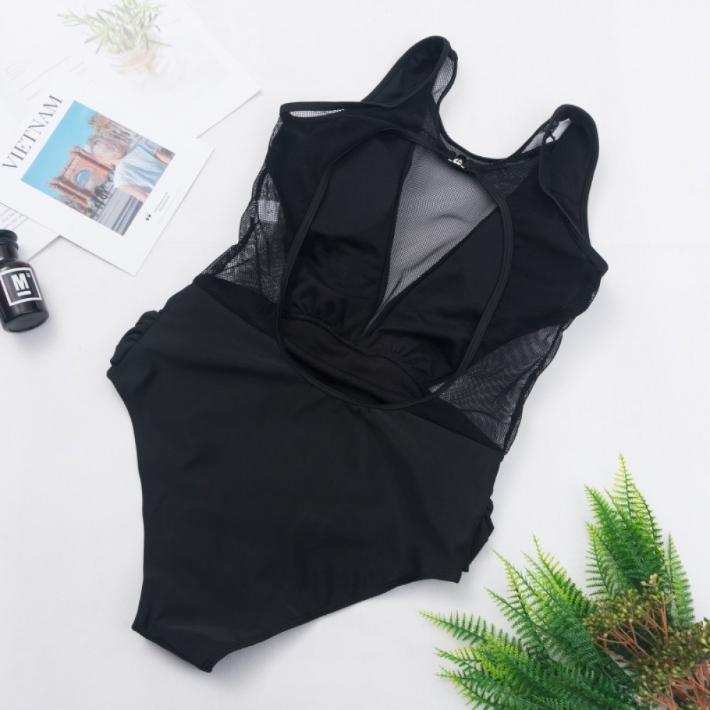 New one-piece swimsuit independent station mesh stitching black one-piece swimsuit