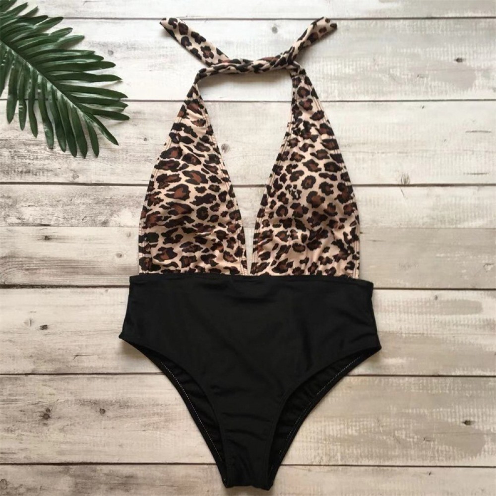 New one-piece swimsuit leopard print deep V one-piece swimsuit