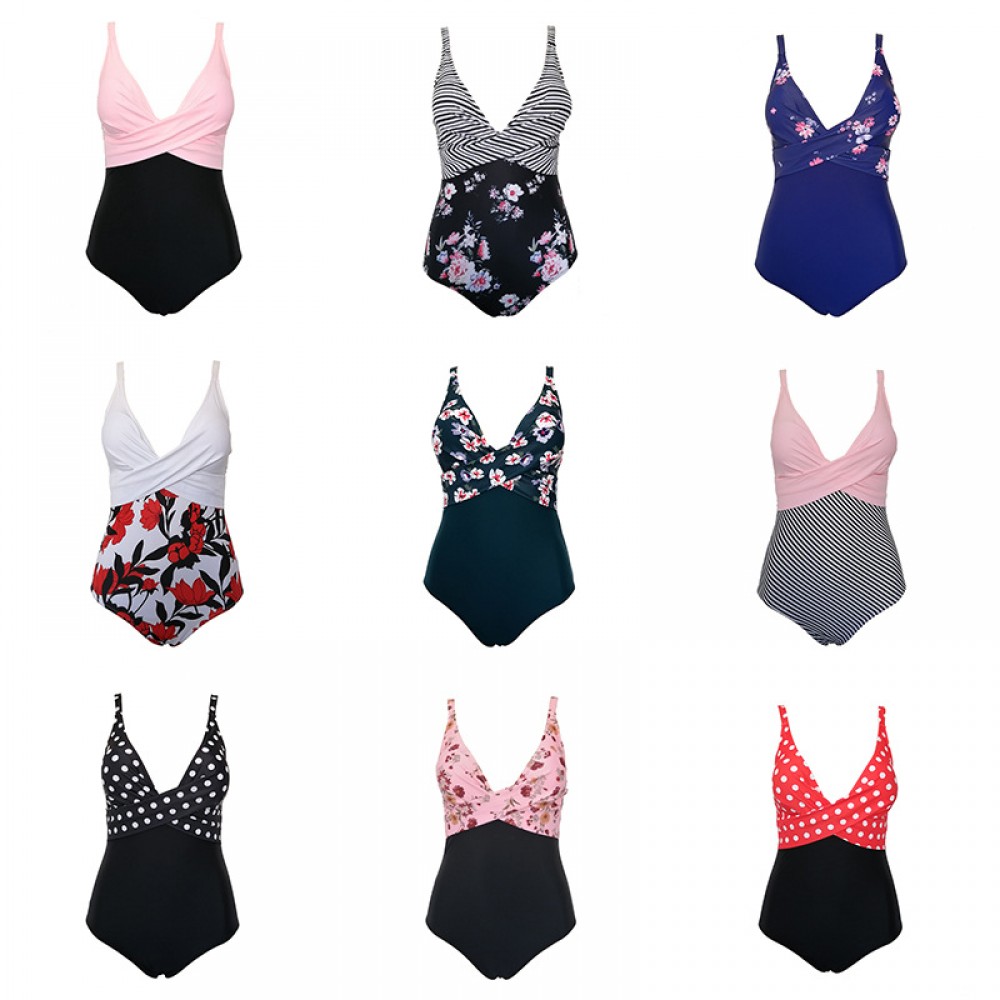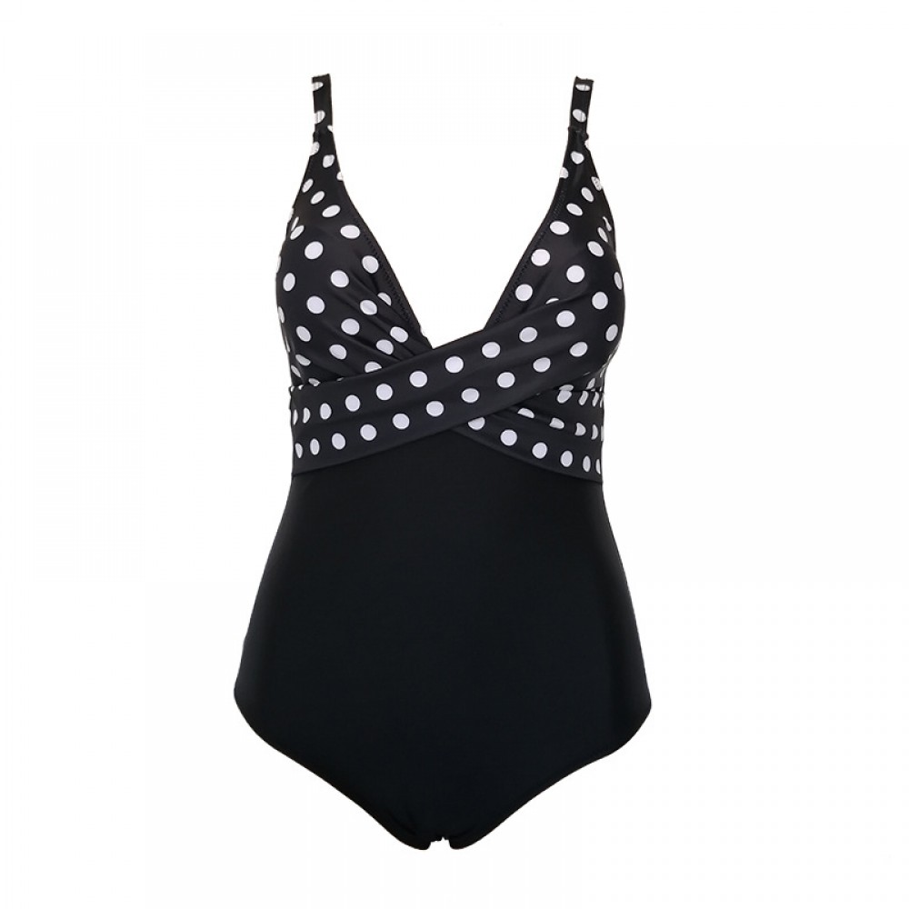 New one-piece swimsuit plus size 2XL wave dot printing one-piece swimsuit female