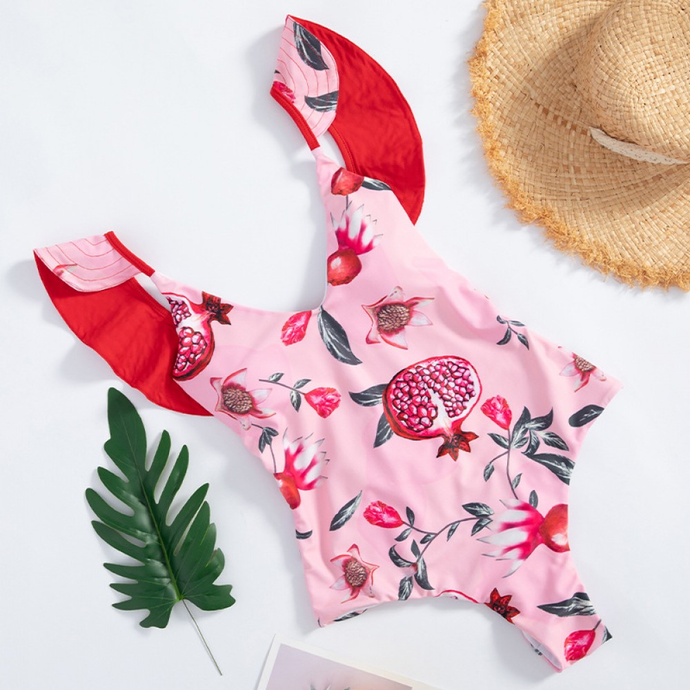 New one-piece swimsuit printed one-piece lotus leaf swimsuit women