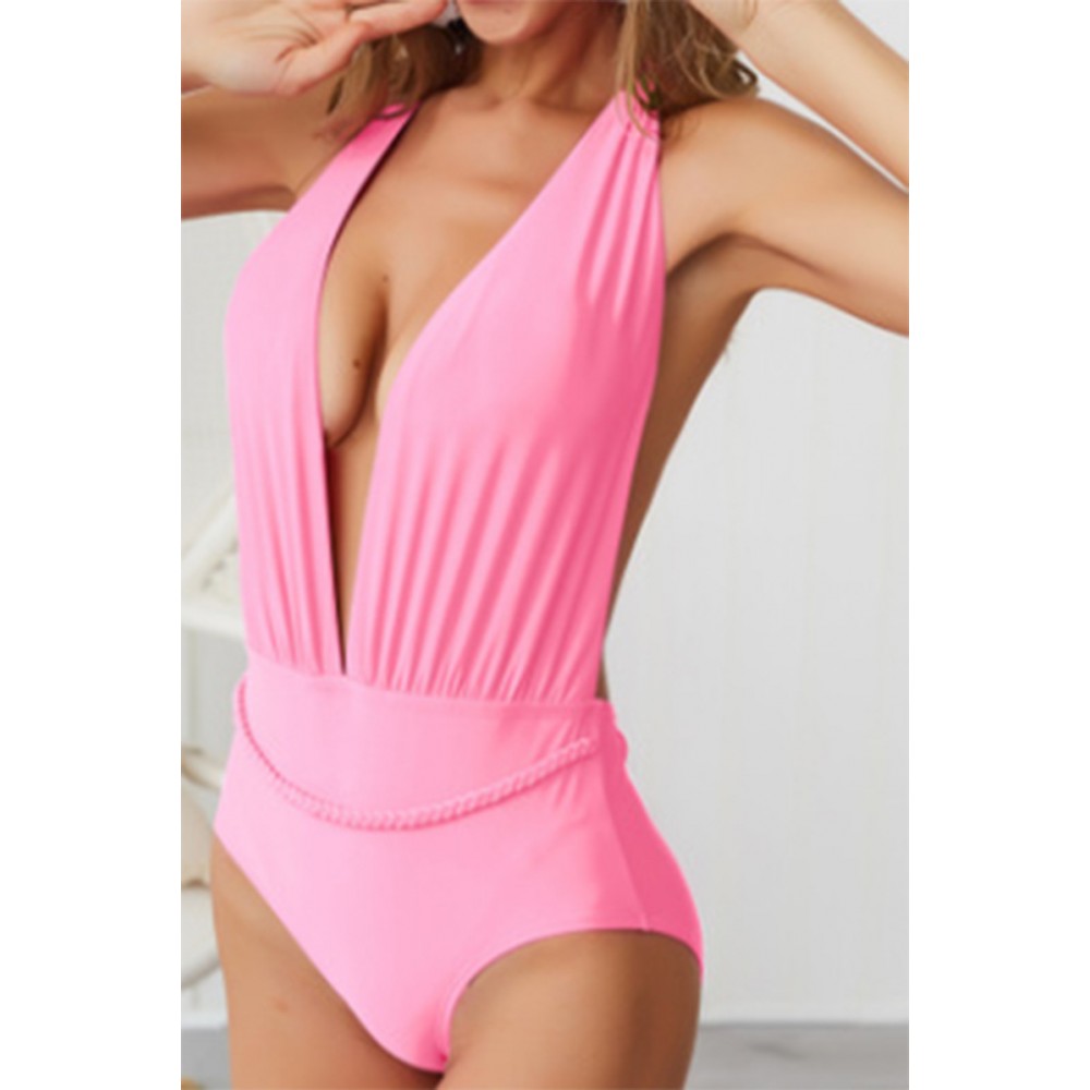 New one-piece swimsuit solid color leak back one-piece swimsuit women