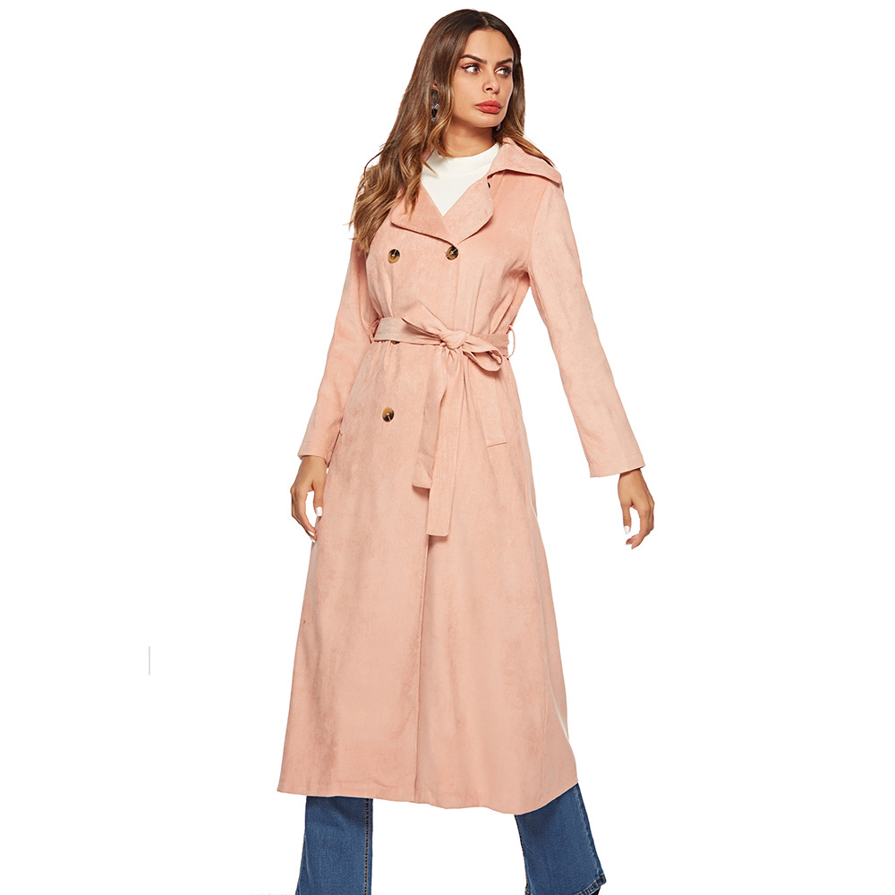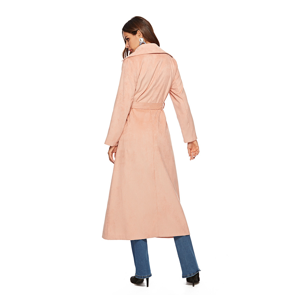 New Pink Corduroy Trench Coat Lace Lapel Button Long Sleeve Women