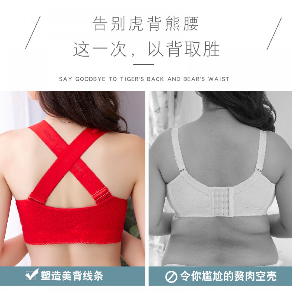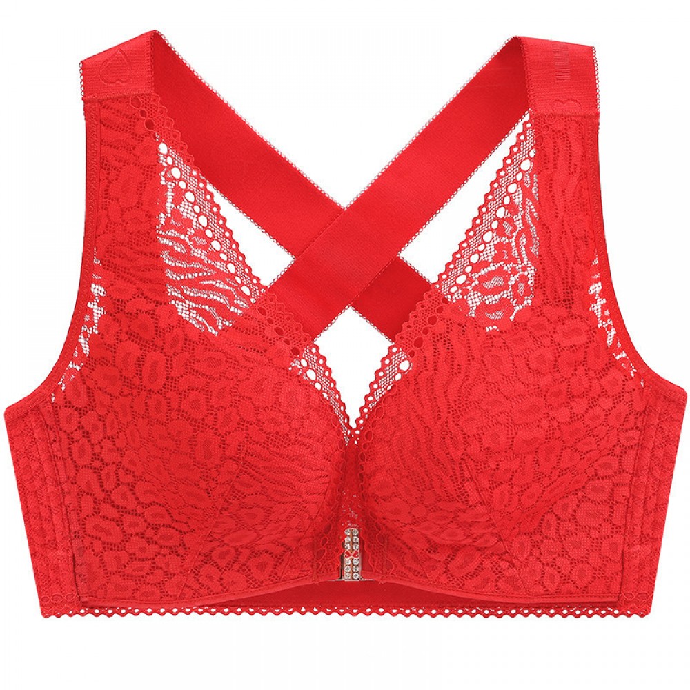 New product front buckle no steel ring large size bra lace cross beautiful back underwear women gathered adjustable thin bra