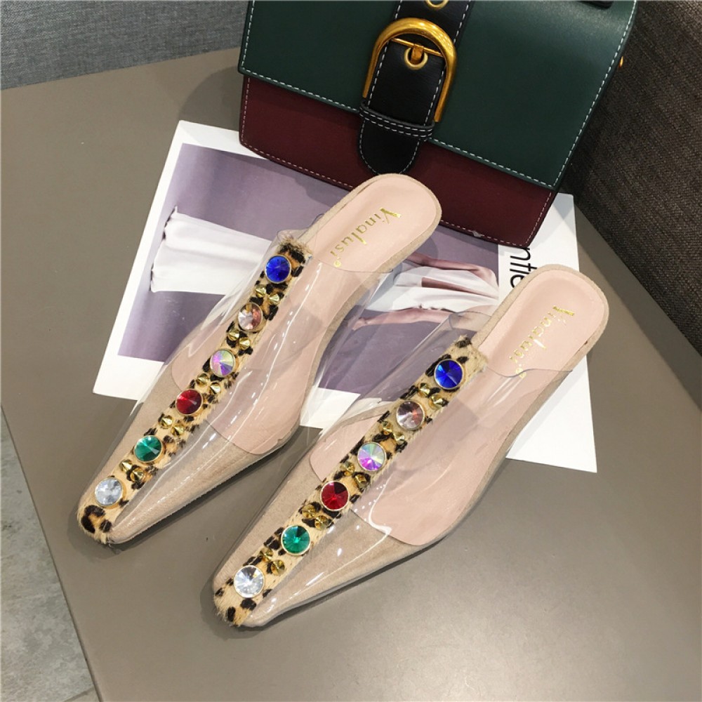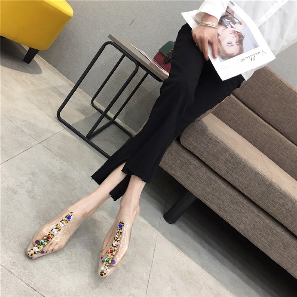 New women's shoes rhinestone pearl transparent word sandals fairy style thick heel open toe slippers..