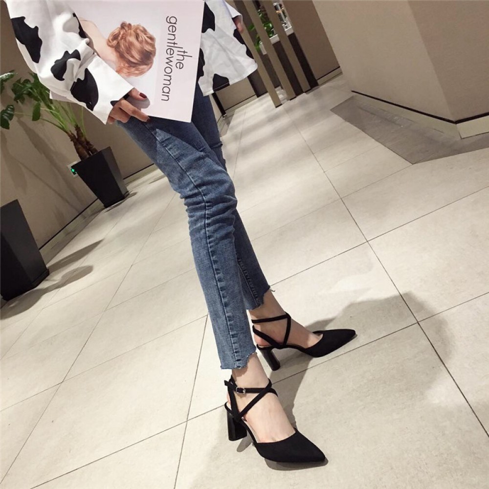 New Roman suede winding hollow fashion thick high-heeled shallow mouth buckle OL dress shoes women