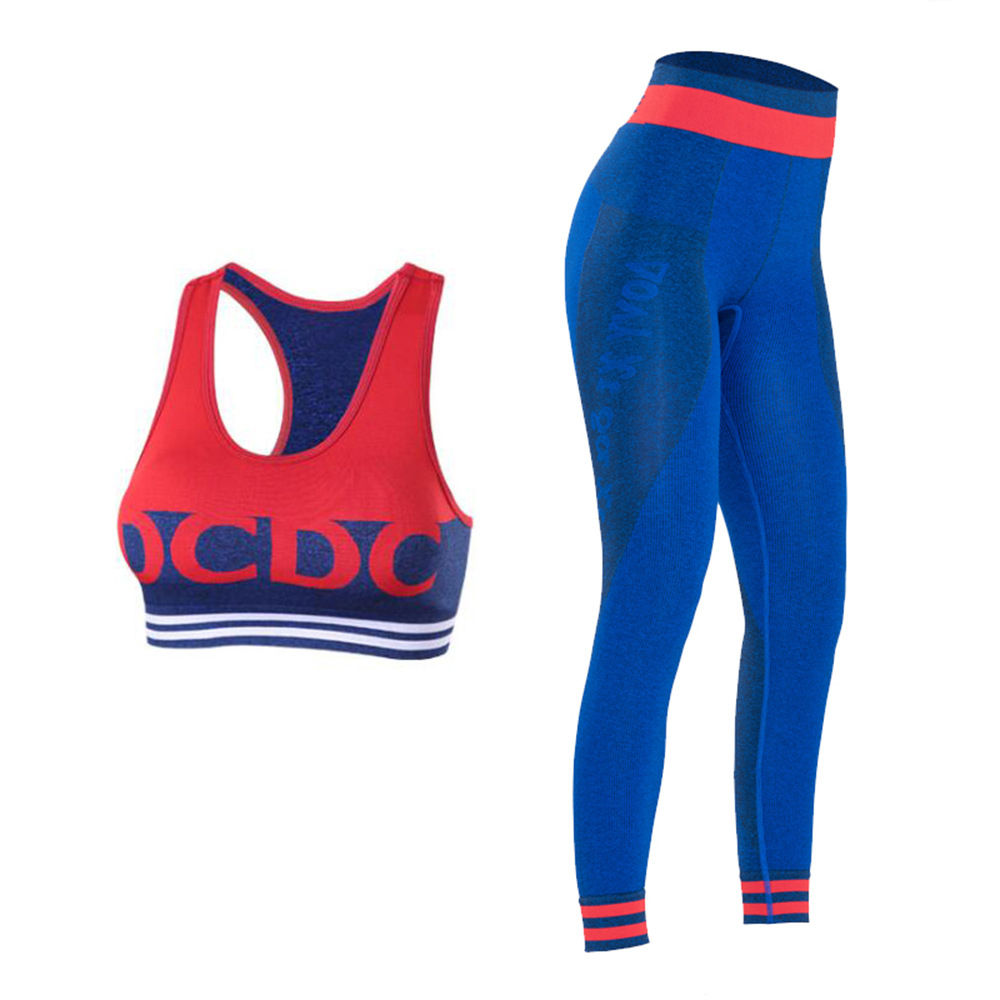New seamless jacquard sports suit female outdoor running yoga fitness stretch tight two-piece slim