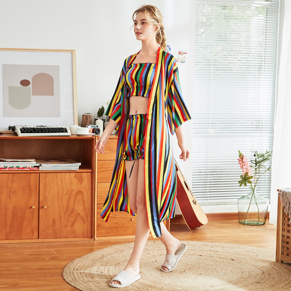 New simulation silk wedding pajamas silk ladies spring and autumn summer long morning robe home pajamas
