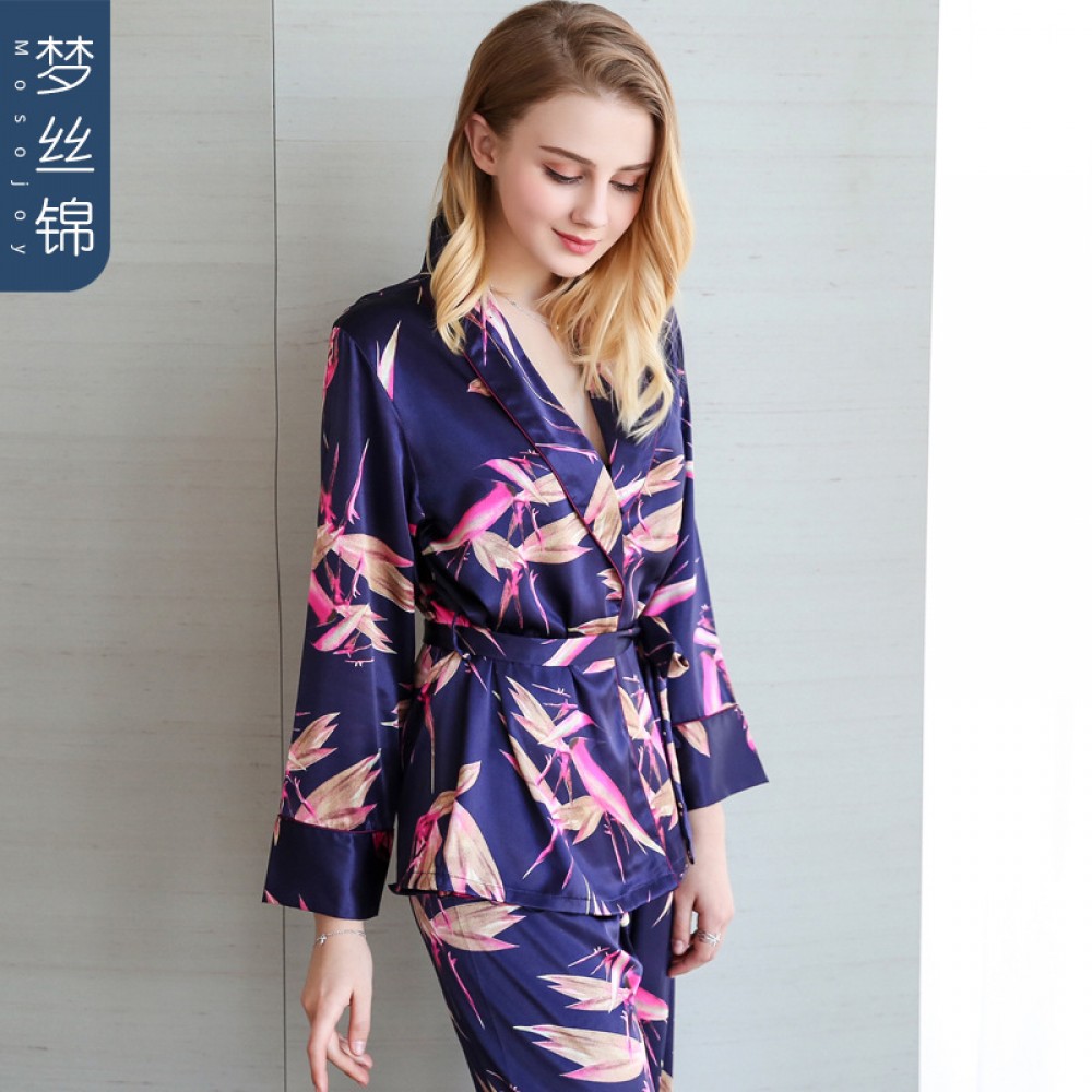 New spring and autumn simulation silk strap trousers pajamas long-sleeved home service three-piece suit home service