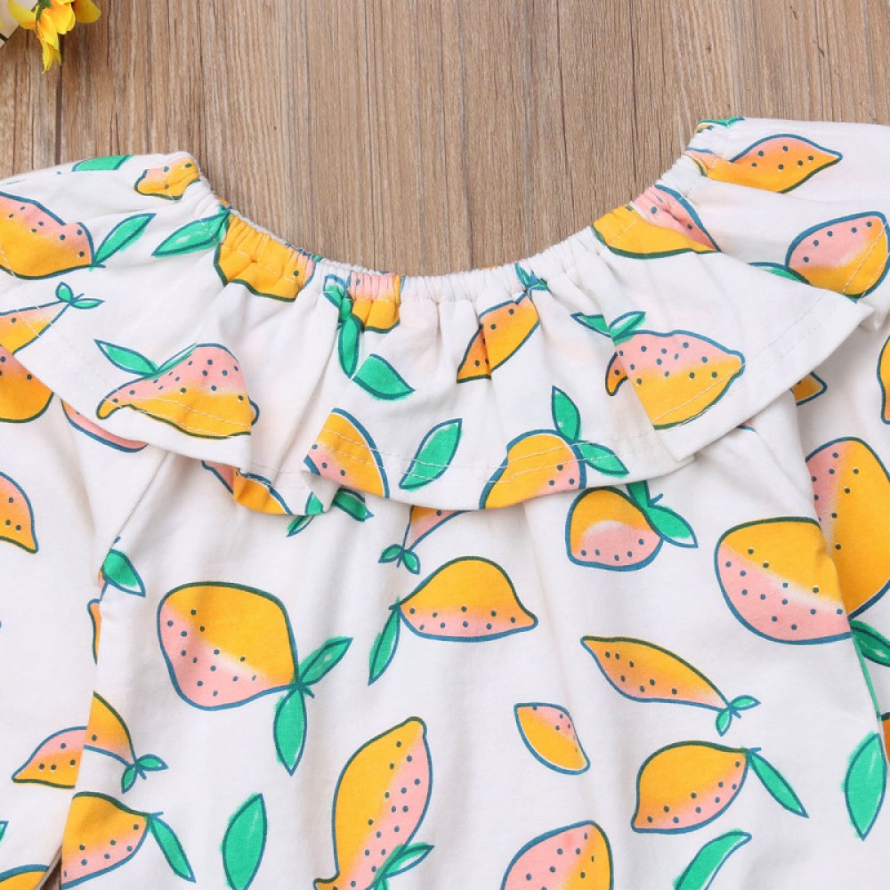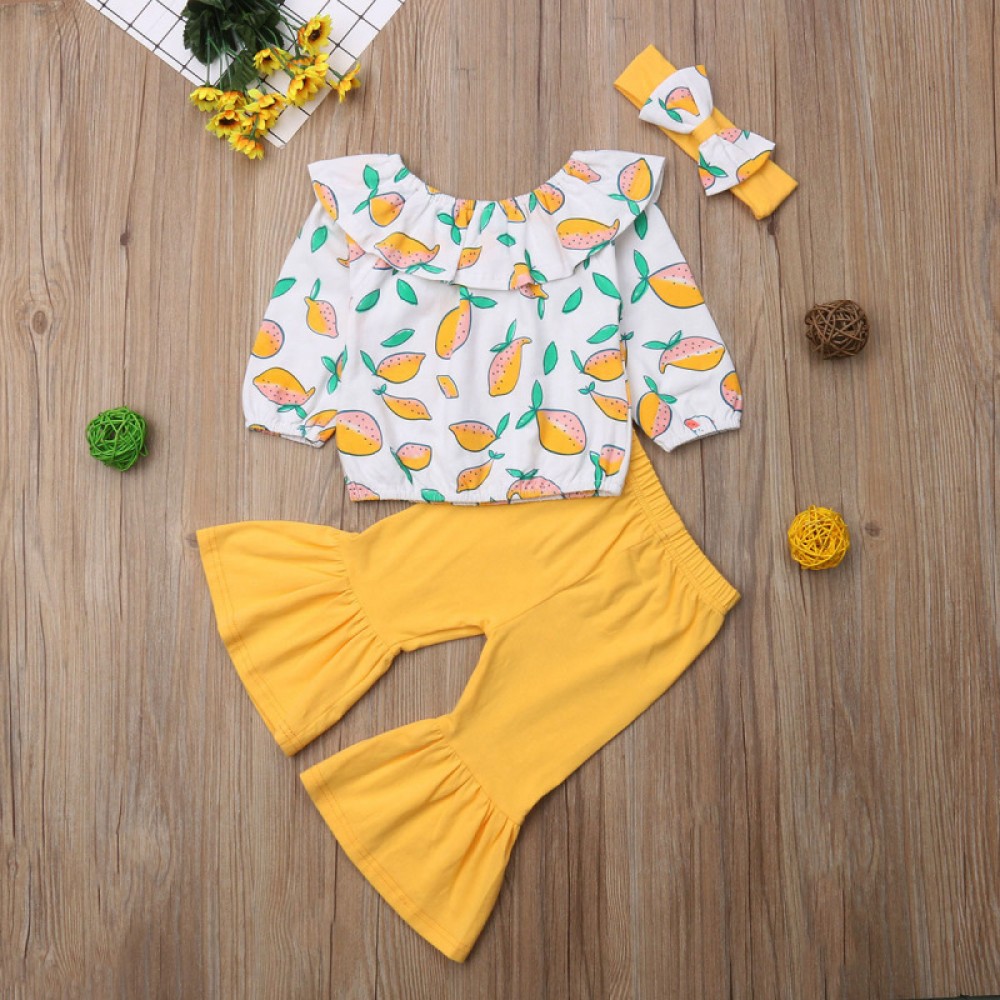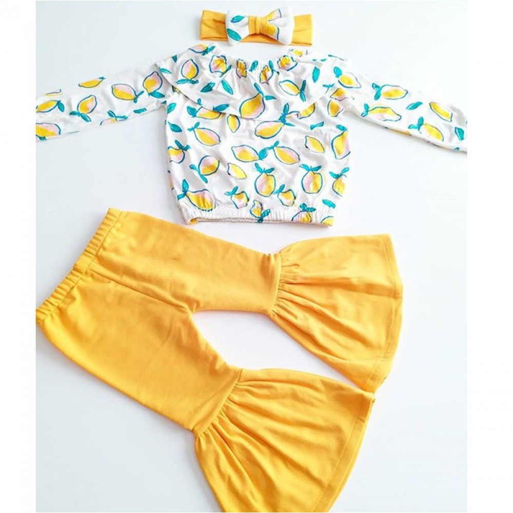 New style 0-4 years old lively printed lemon long sleeve shirt flared pants trousers