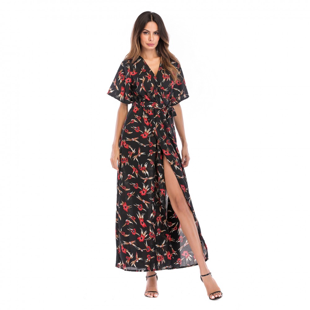 New Women's Dress Deep V-neck Multicolor Short Sleeve Chiffon Floral Beach Skirt Summer Vacation