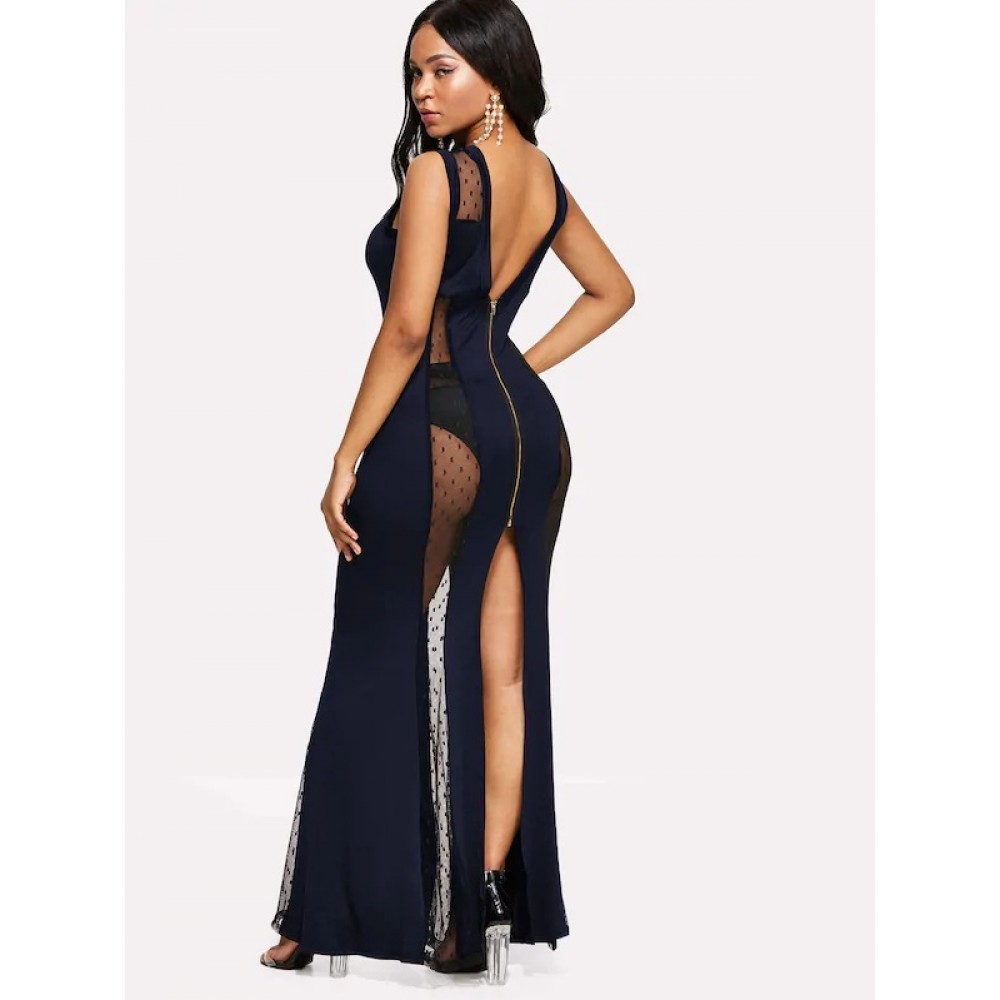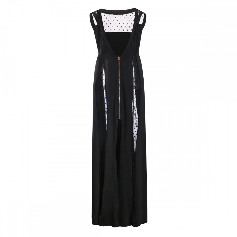 New women's large V-neck mesh splicing sexy perspective dress