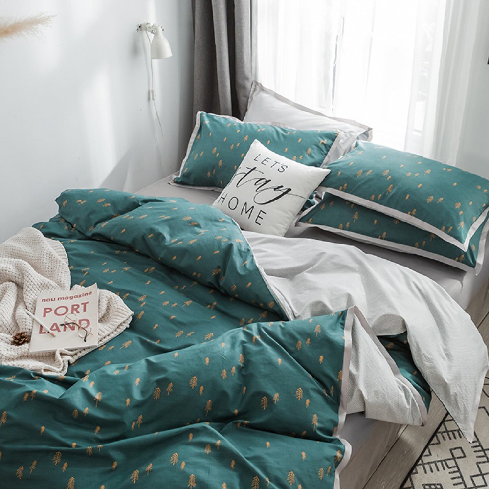Nordic cotton four-piece printed wide-brimmed cotton American student dormitory literary European quilt bedding