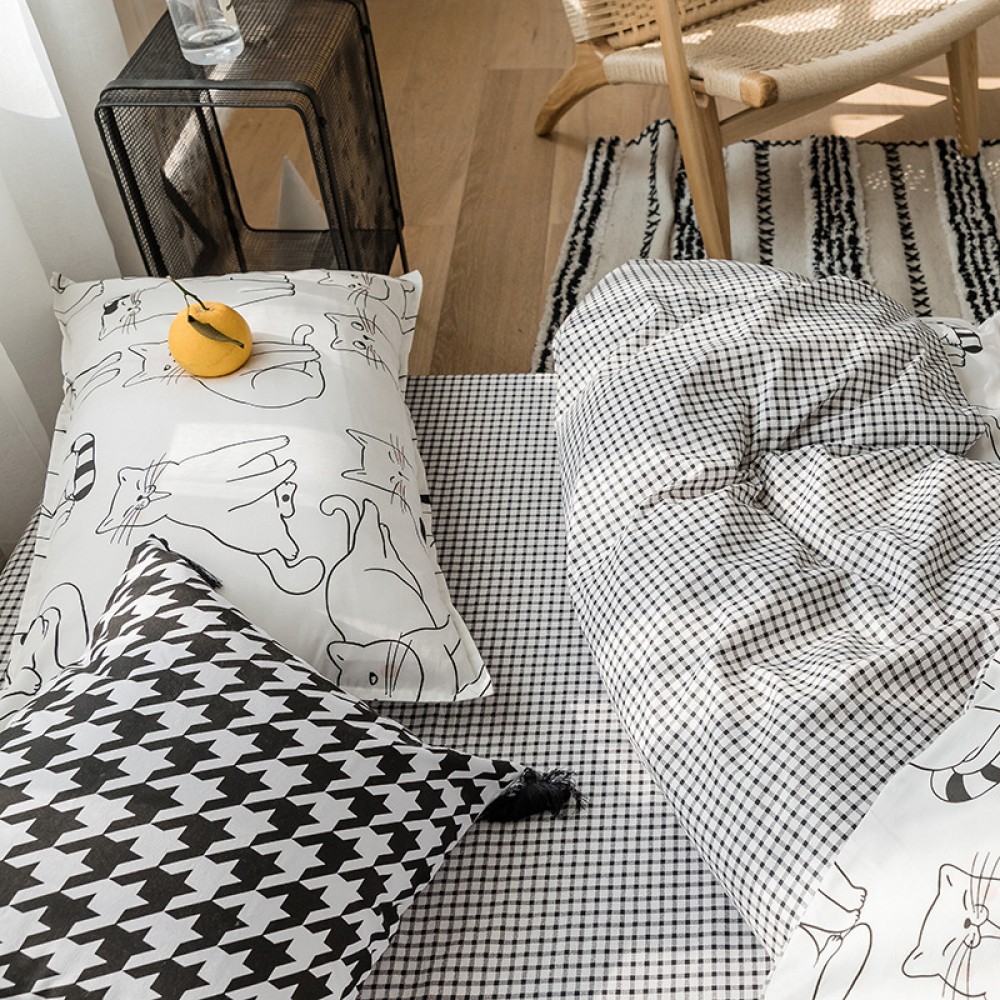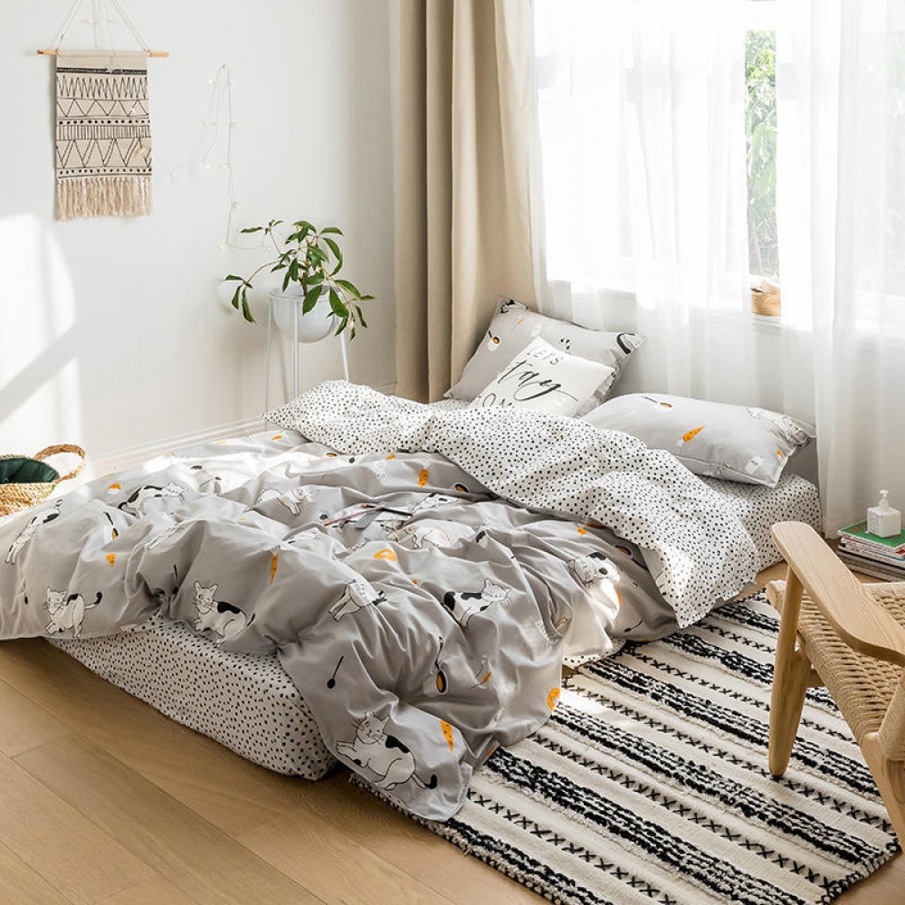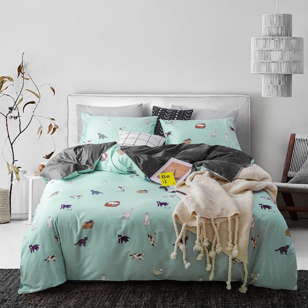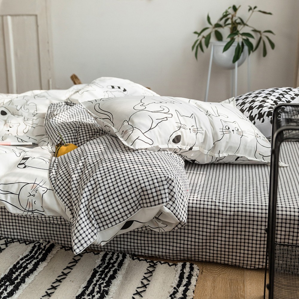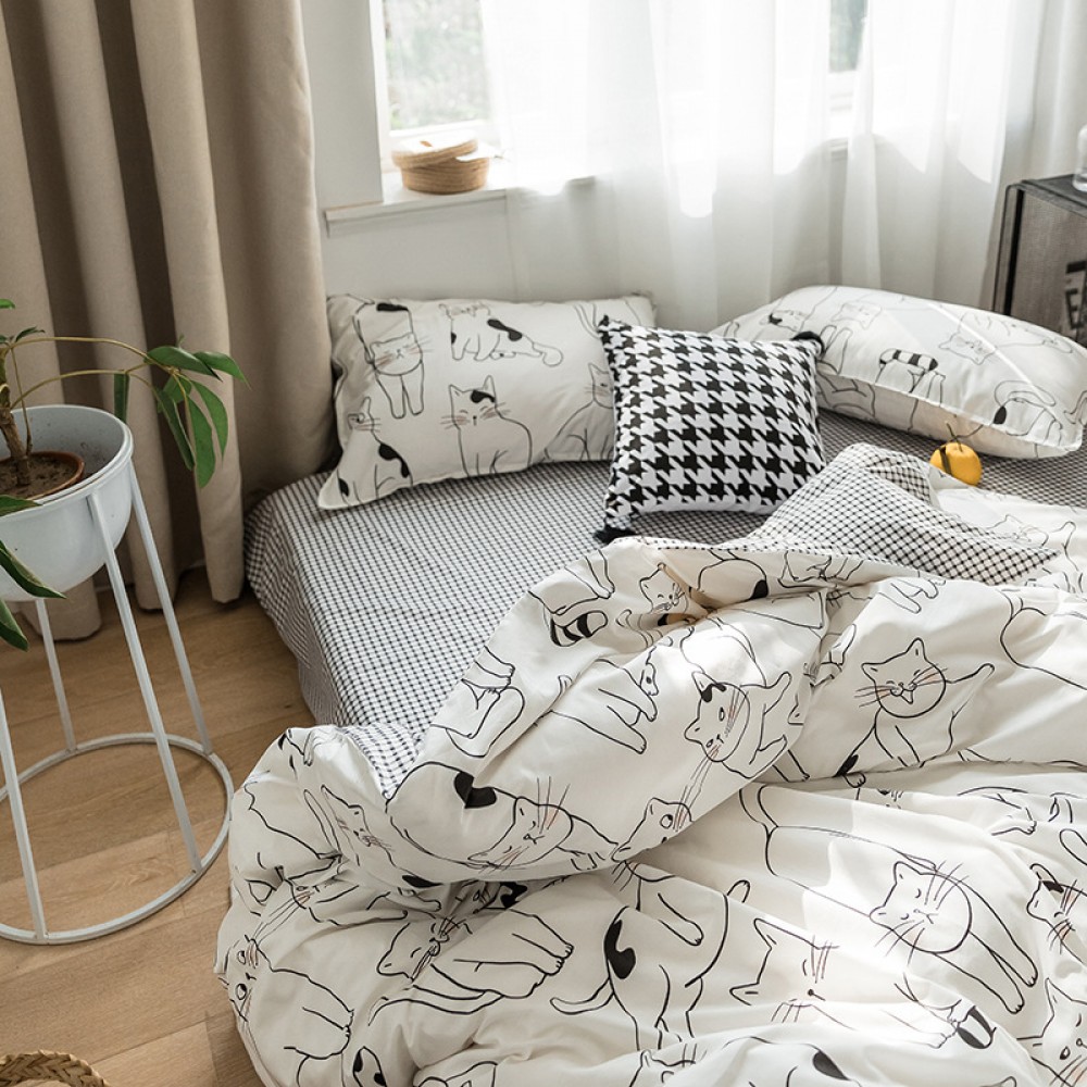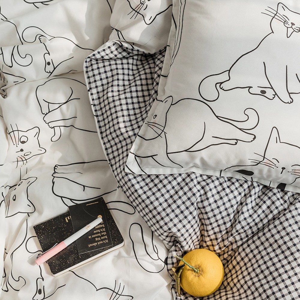 Nordic simple small fresh and cute cat cotton 1.8 meters four-piece cartoon 4 three-piece bed linen
