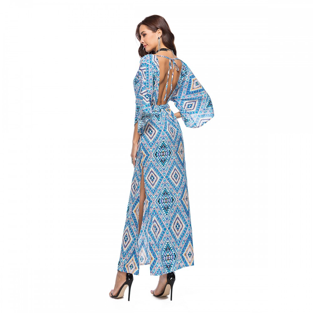 Open-back lace-up hot-sale 3/4 sleeve printed women's dress
