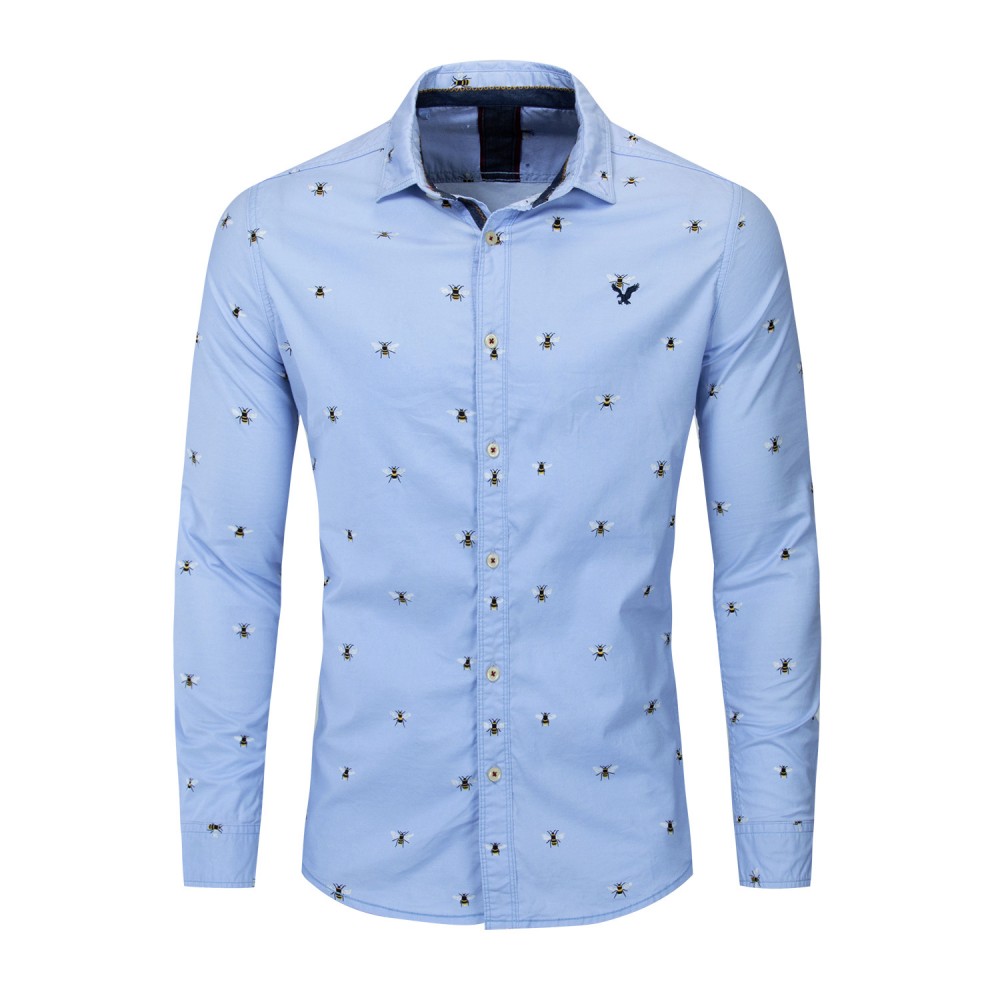Ouma Men's Fashion Print Shirt Casual Lapel Cotton Shirt 223
