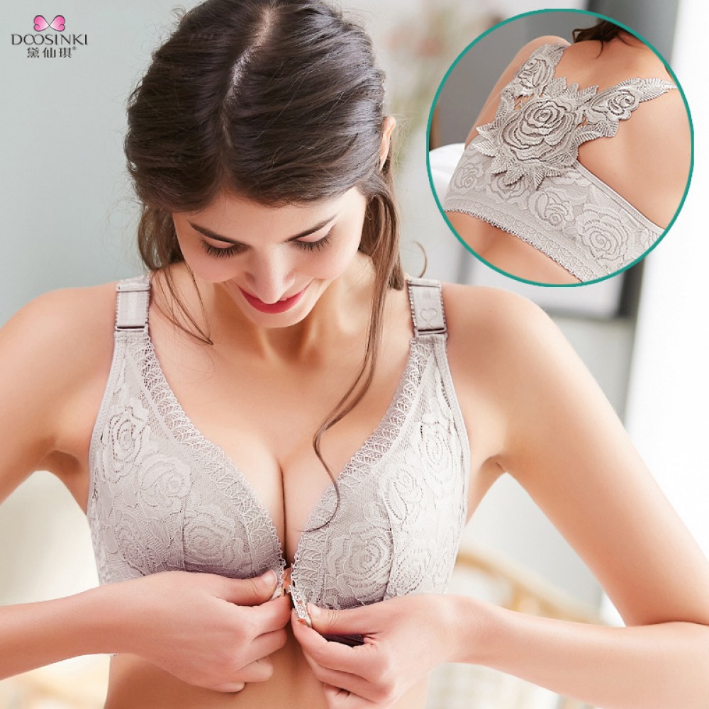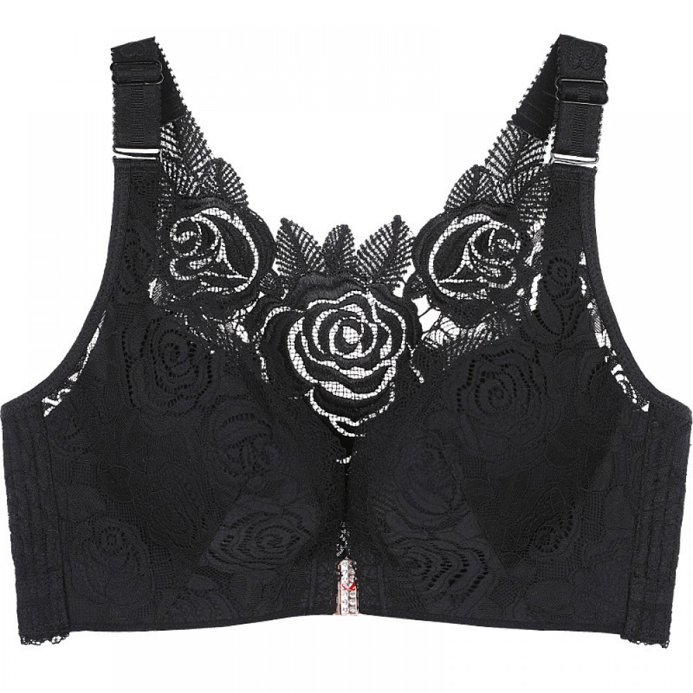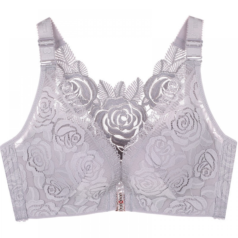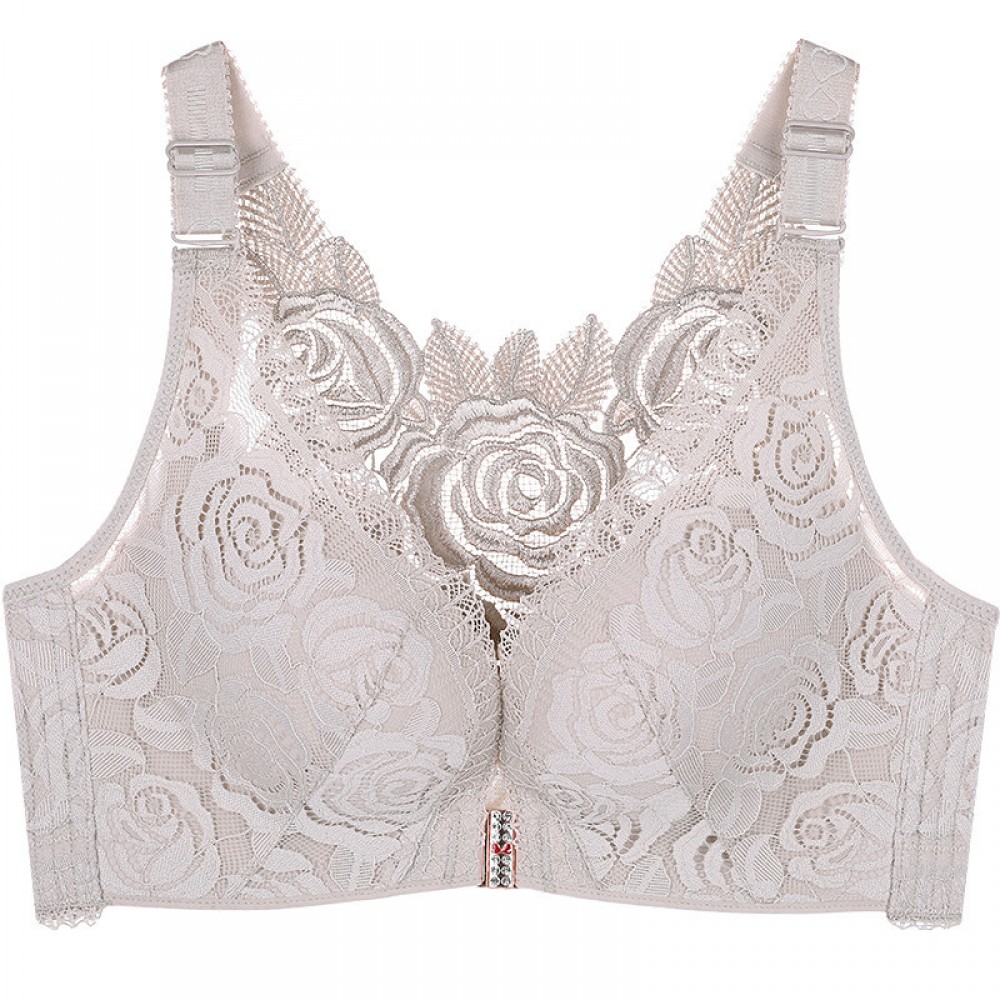 Oversized bra female fat mm front buckle rose beauty back no steel ring underwear lace gathered adjustment thin bra