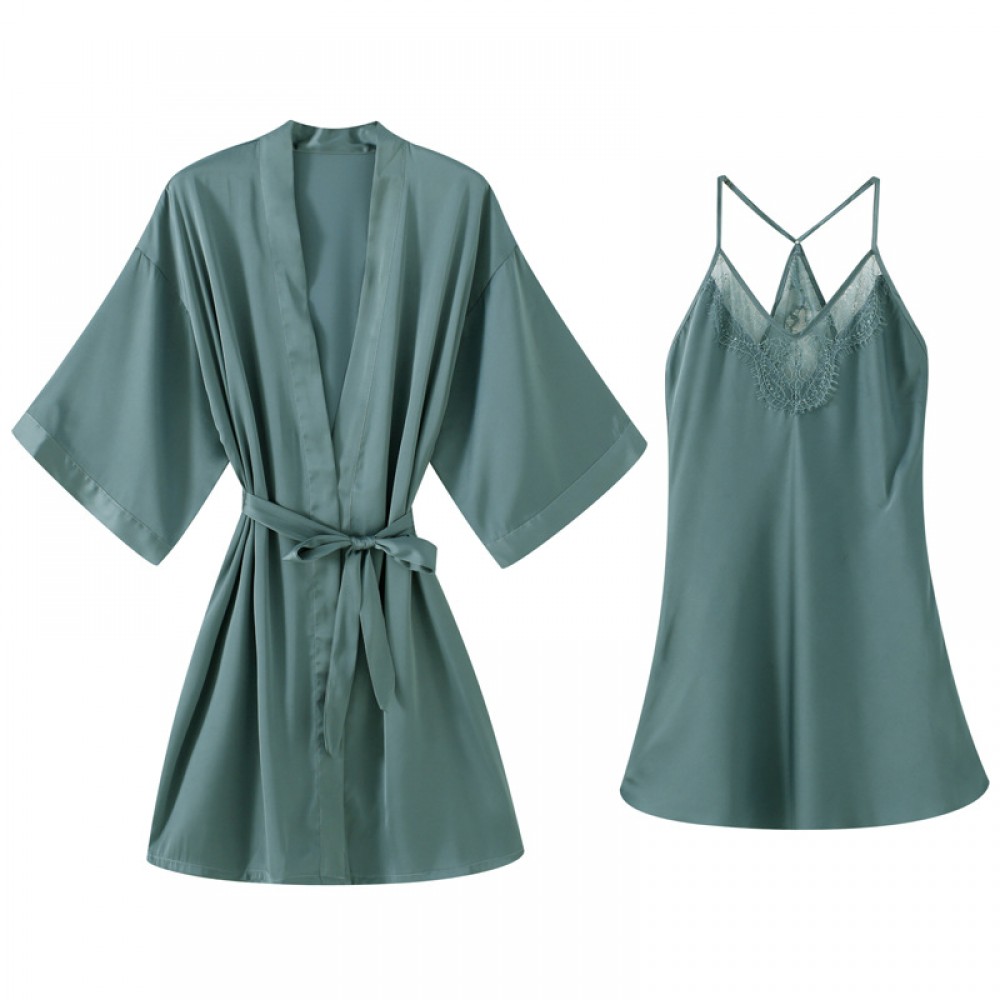 Pajamas women autumn ice silk spring autumn and winter thin section sexy lace lace sexy suspenders nightdress nightgown two-piece suit