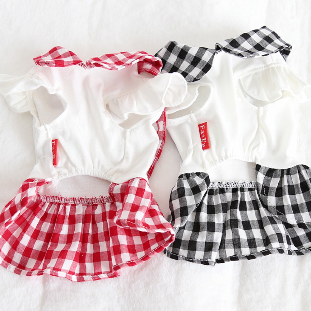 Petstyle spring and summer new doll collar double belt plaid skirt simple dress dog clothes cat