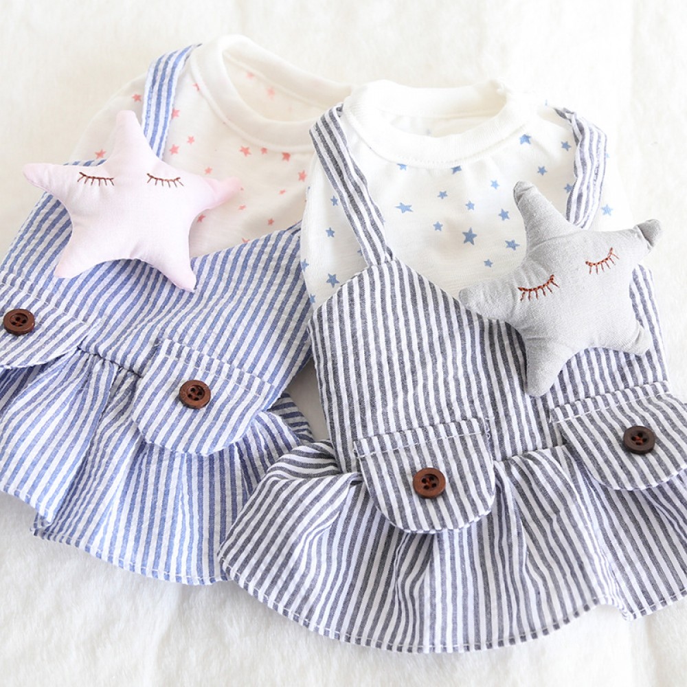 Petstyle spring and summer new stars fake two-piece strap skirt cute dress dog clothes cat