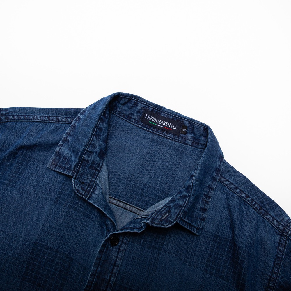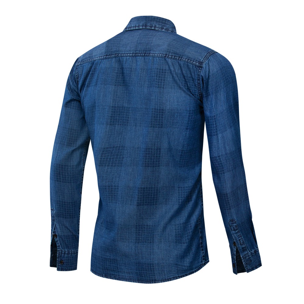 Plus size men's spring and autumn long-sleeved denim shirt plaid shirt0