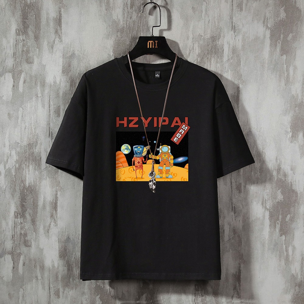 Pure cotton youth summer printed T-shirt men's casual shirt youth fashion