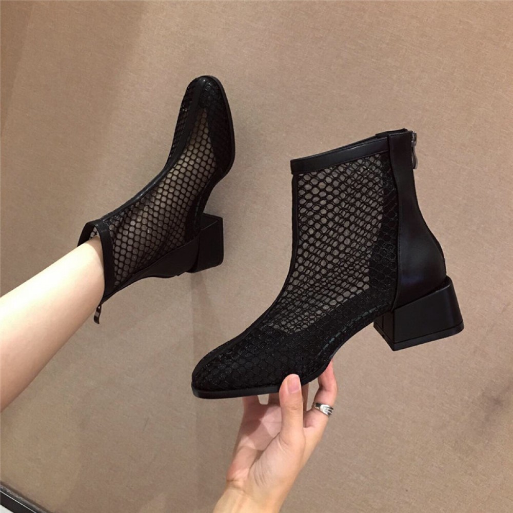 Roman sandals female tide thick with autumn new square head net boots wild hollow sandals