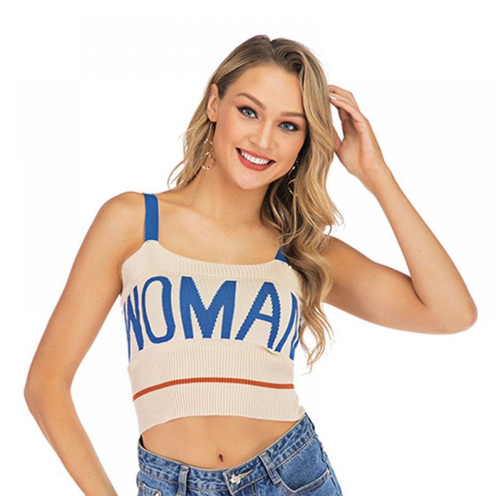 Sexy colorblock letter sleeveless suspender tops knitted vest women summer shorts