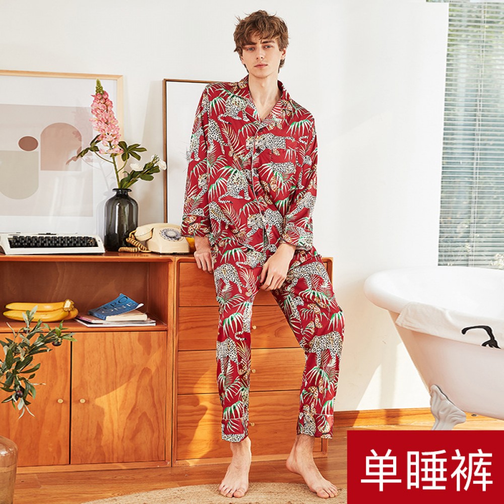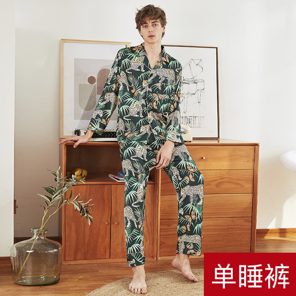 Silk pajamas men's spring and summer single trousers pajamas home service single trousers