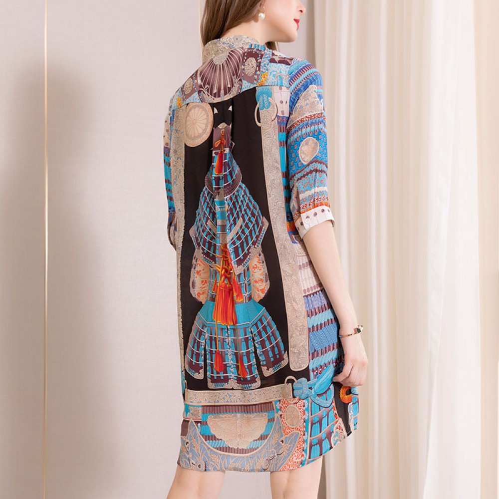 Silk printed shirt skirt spring new mulberry silk niche design temperament high-end loose version dress