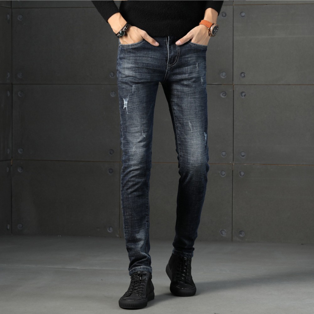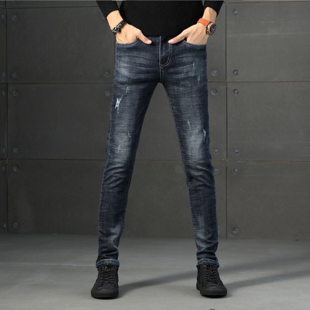 Spring and autumn men's jeans new Korean version of the trendy slim feet pants blue men's casual jeans