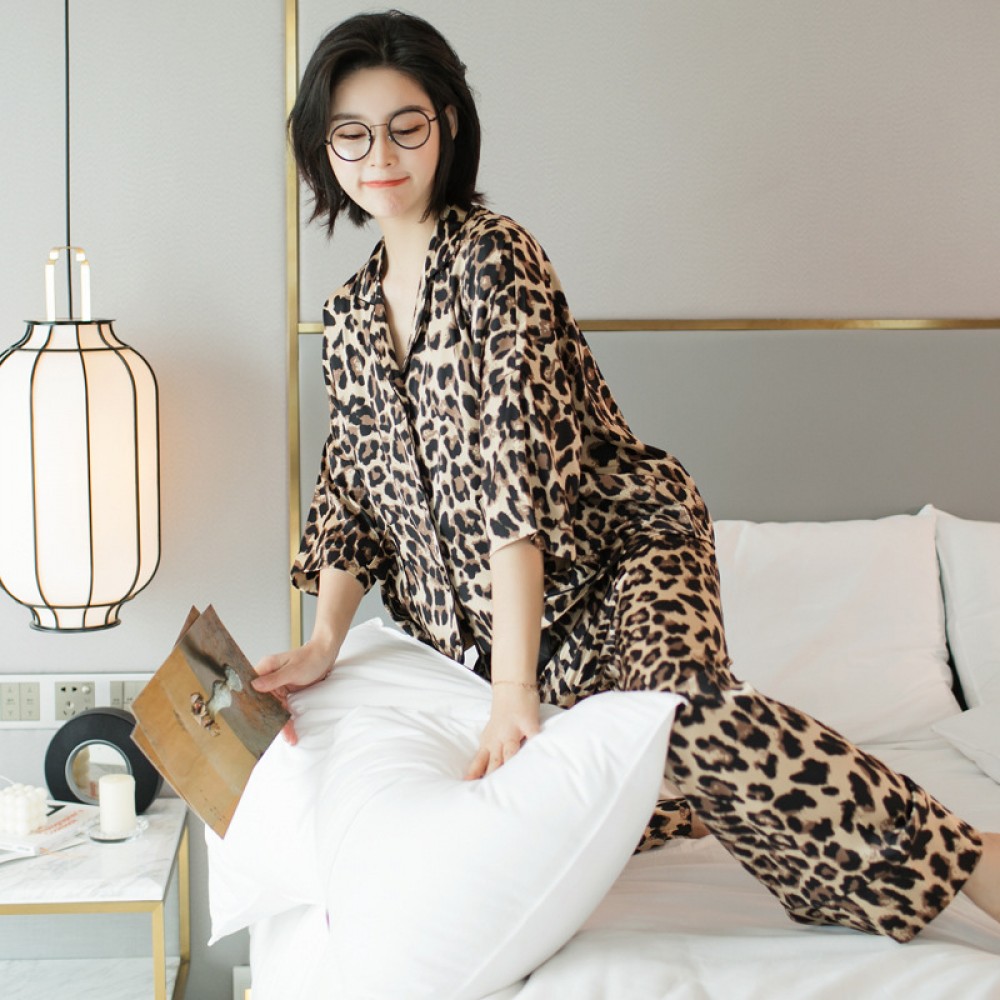 Spring and autumn summer simulation silk sexy couple pajamas suit Korean couple home service plus size pajamas ladies plus size