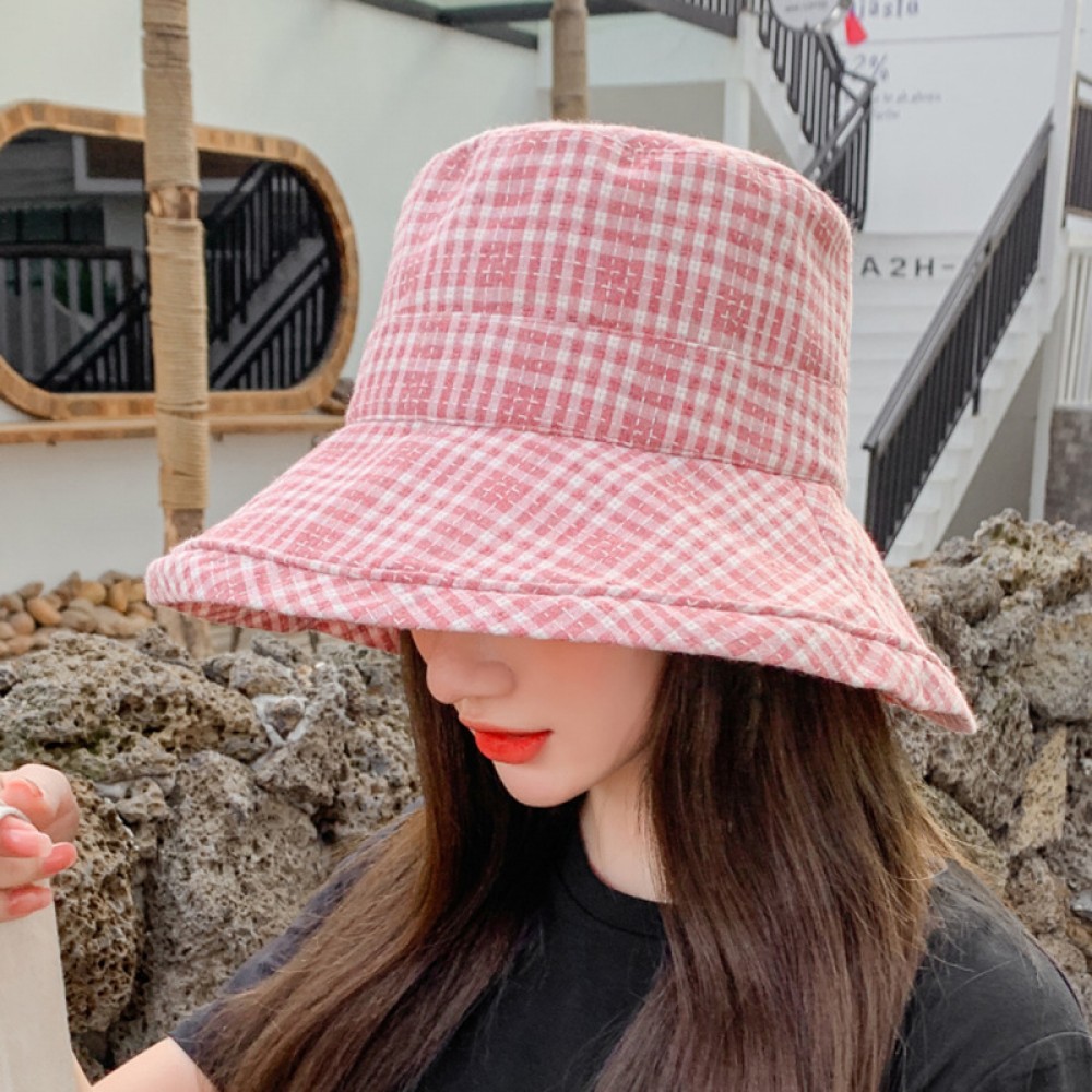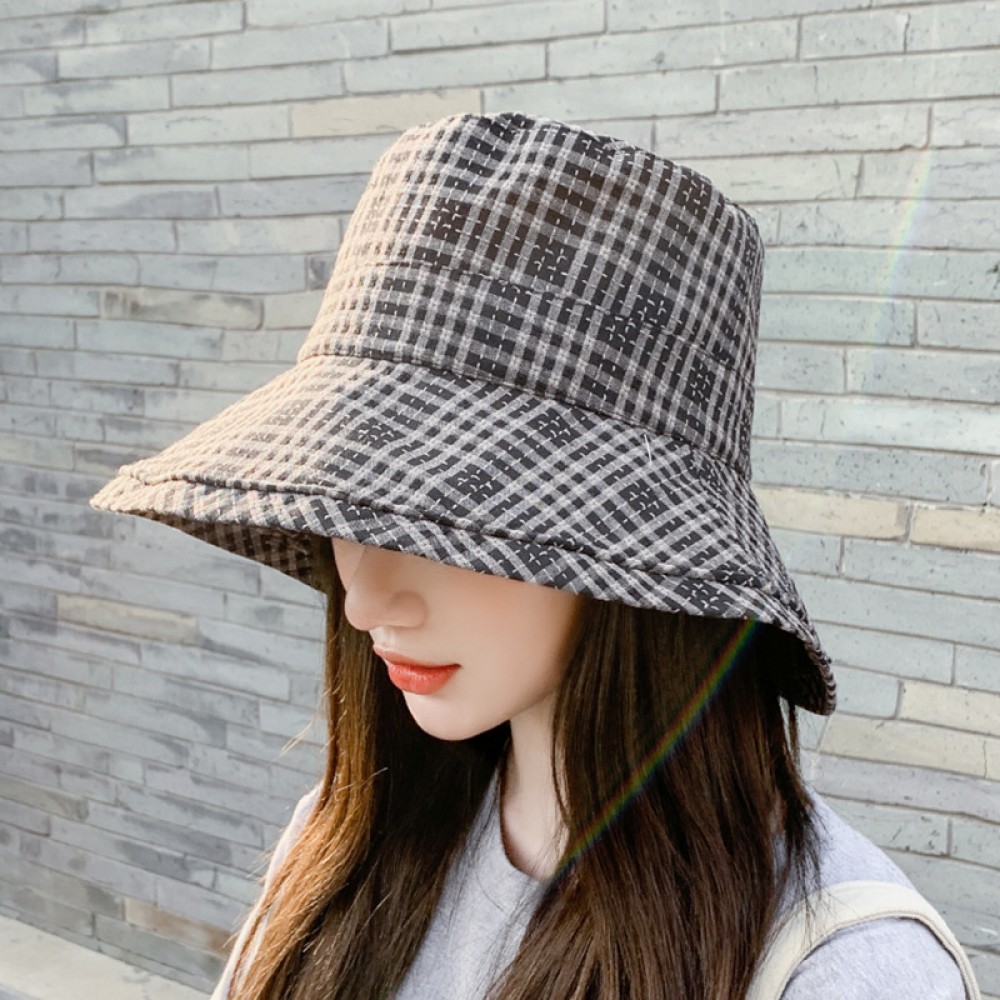Spring and summer cotton and linen Scottish grid children's hat outdoor sunscreen transparent transparent anti-foam fisherman hat
