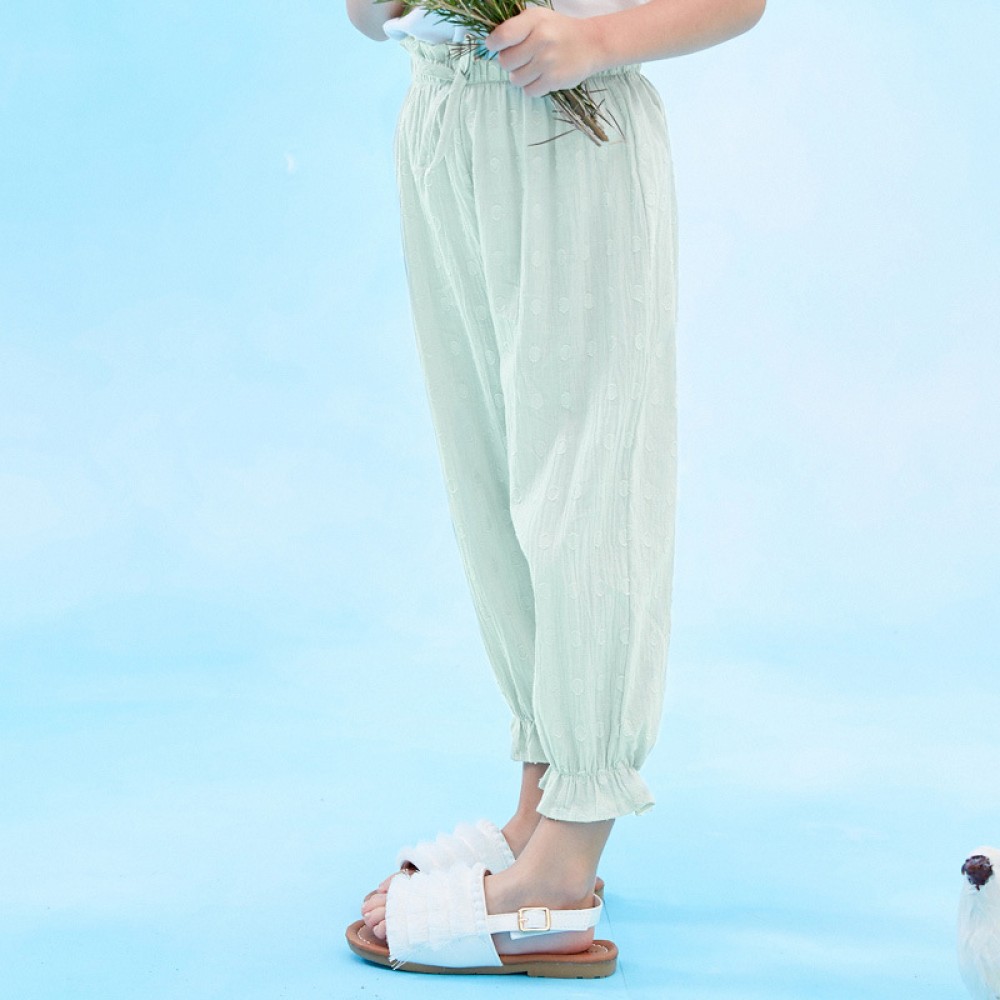Spring and summer new long pants children's clothing girls foreign lantern pants wave point children's mosquito pants