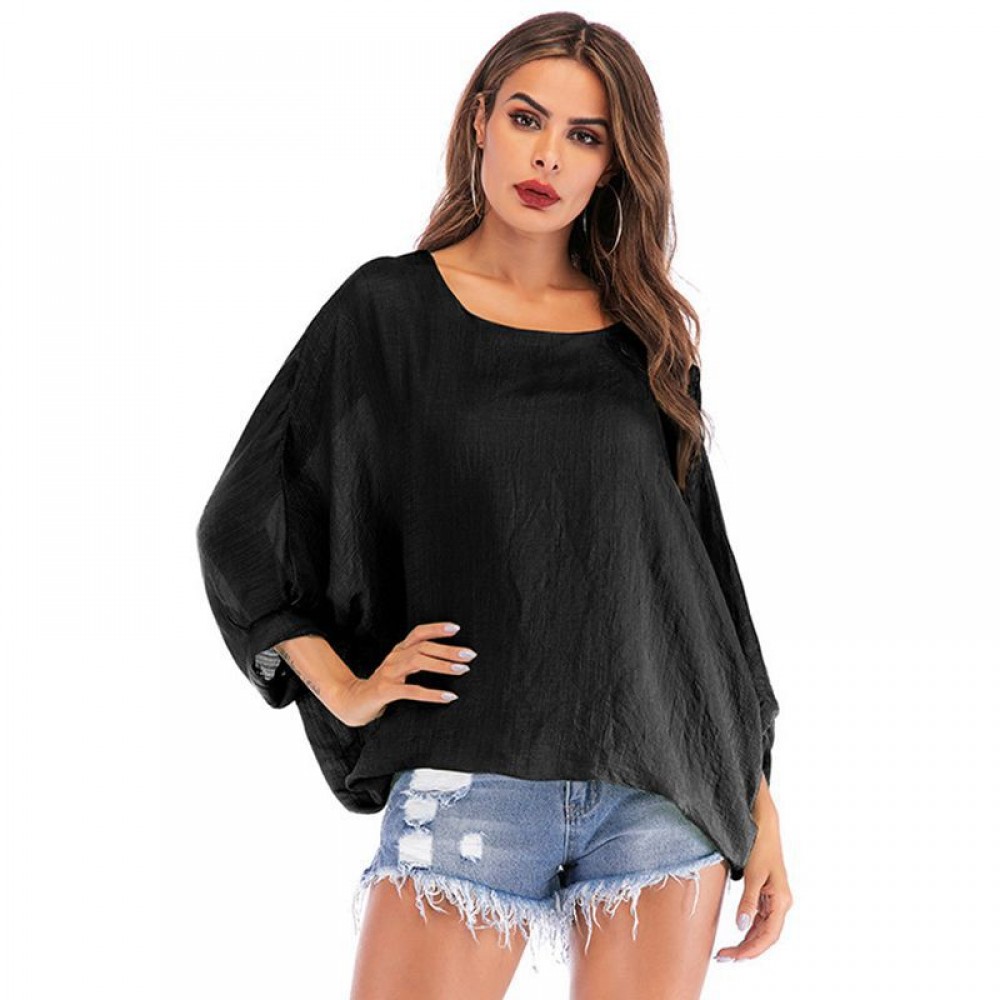 Spring and summer new top solid color bat sleeve T-shirt bottoming shirt