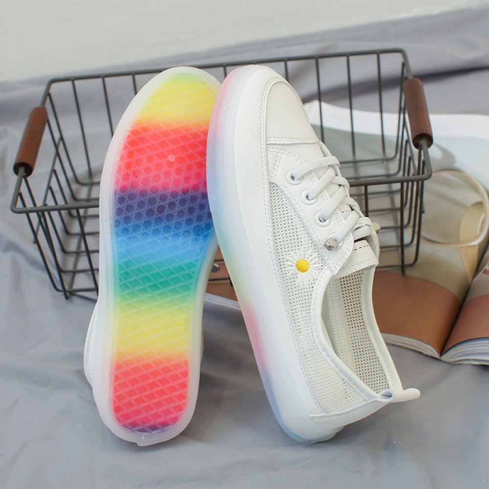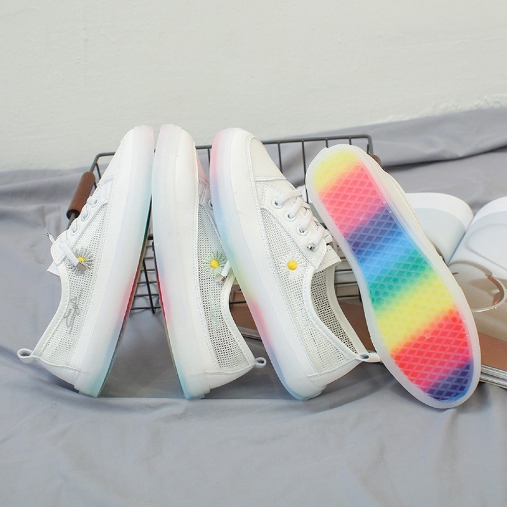 Spring and summer new women's shoes microfiber small daisies white shoes net shoes sports ladies casual shoes women