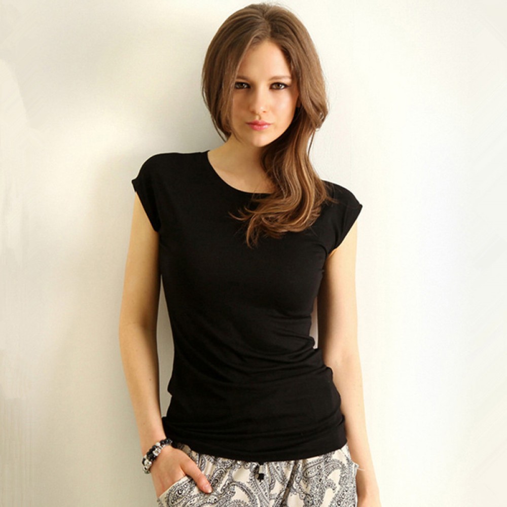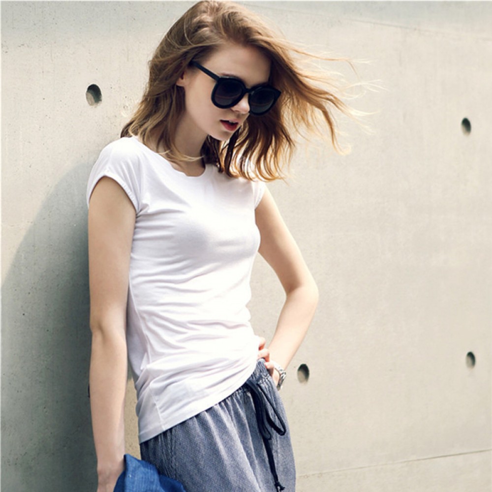 Spring and summer new women's simple backless t-shirt slim short-sleeved solid color bottoming shirt
