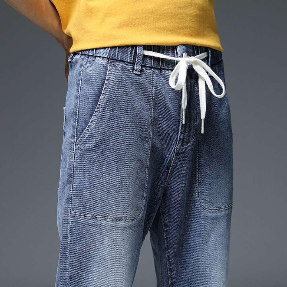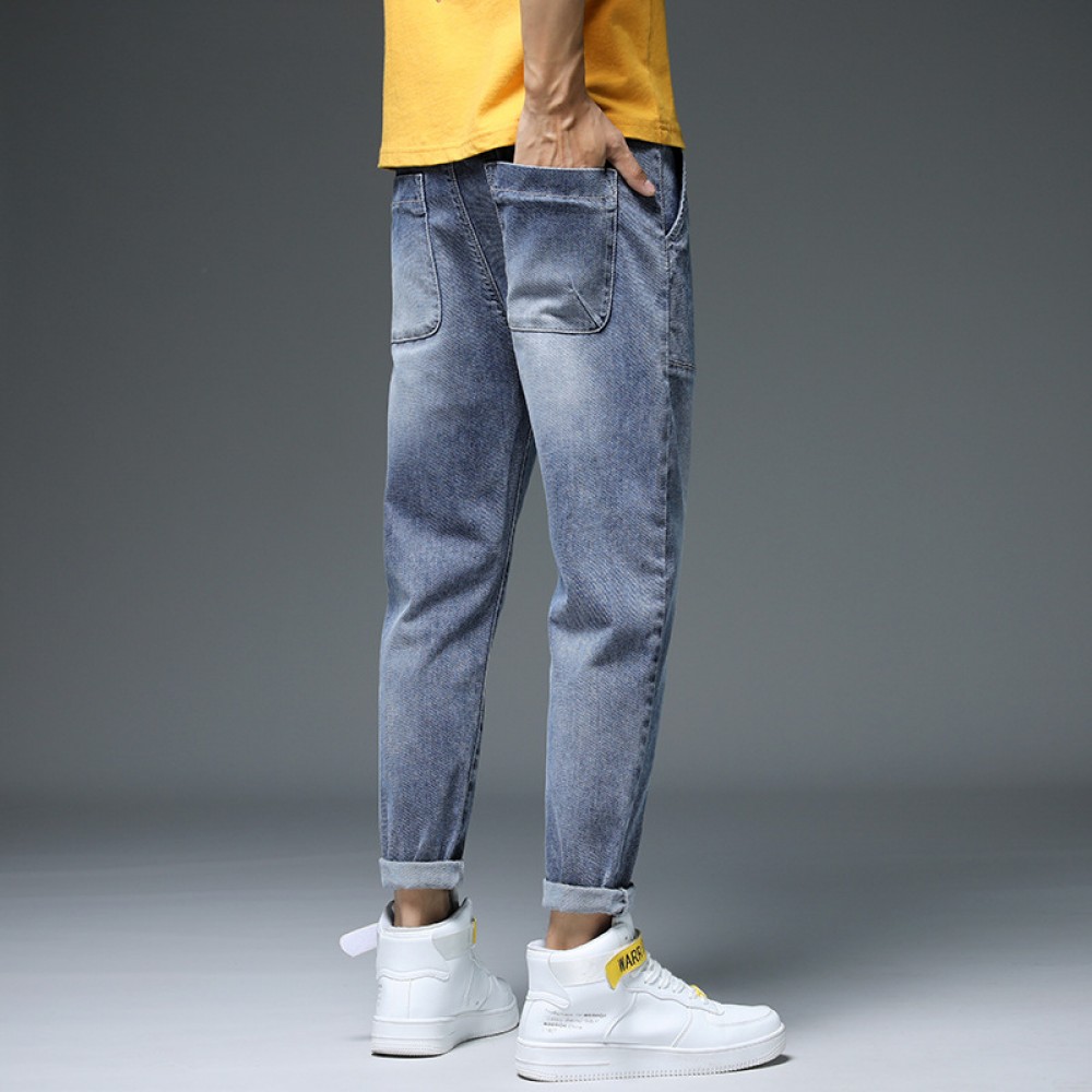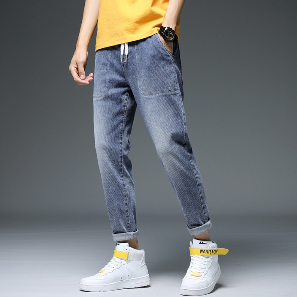 Spring and summer stretch slim jeans men's youth feet pants Korean trend casual jeans