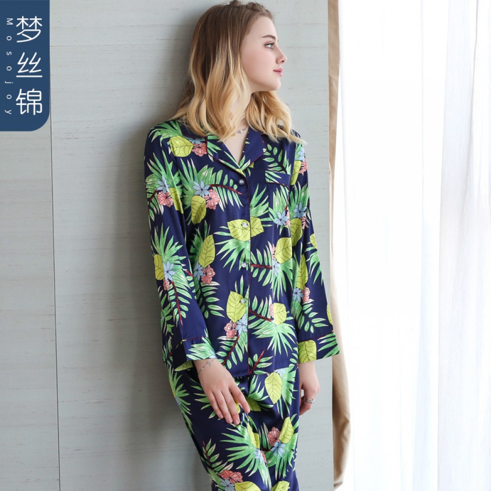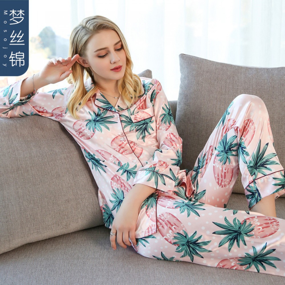 Spring and summer summer new pajamas ladies long-sleeved trousers simulation silk suit thin sexy home service