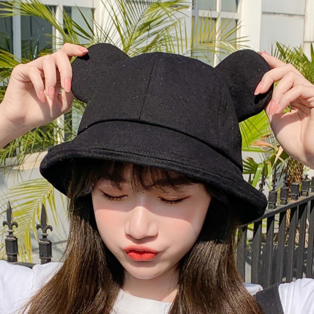 Spring and summer sweet and cute ear fisherman hat female yellow hat basin hat wild shade sunscreen summer travel personality