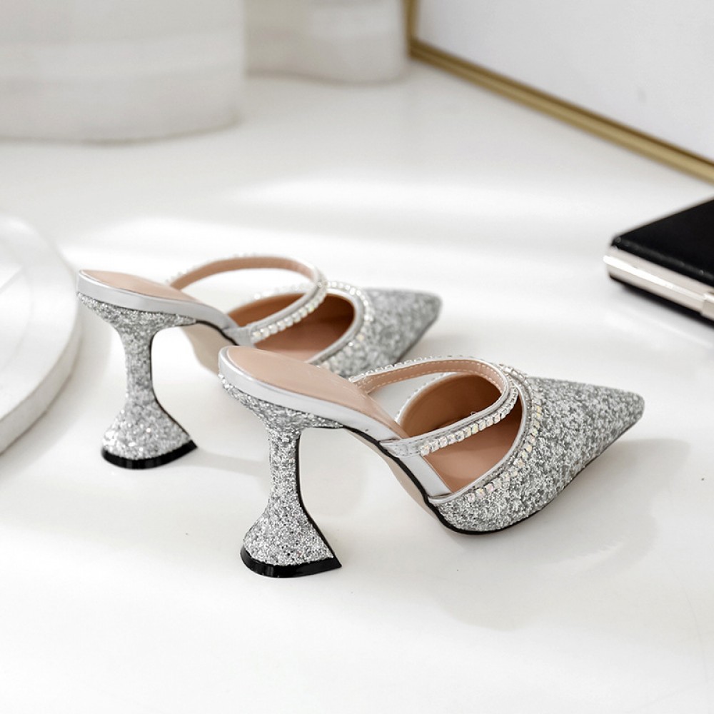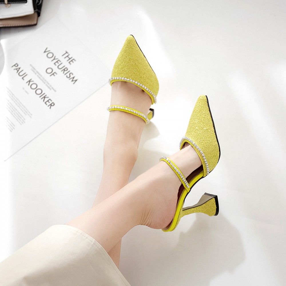 Spring glitter rhinestone sequins pointed wine glasses with high-heeled dresses and single drag OL women's shoes have 41