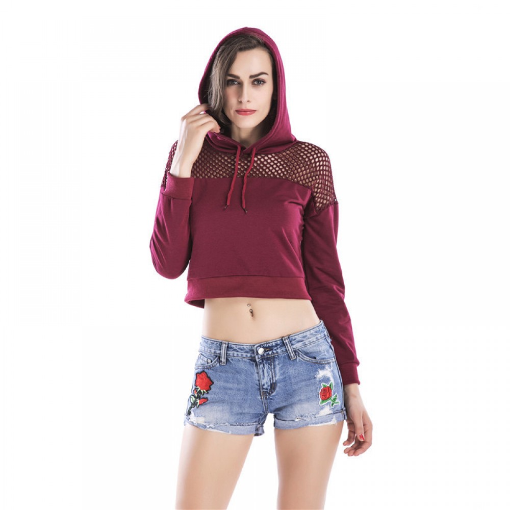 Spring new casual loose short section long sleeve loose hooded gauze short sweater T-shirt female