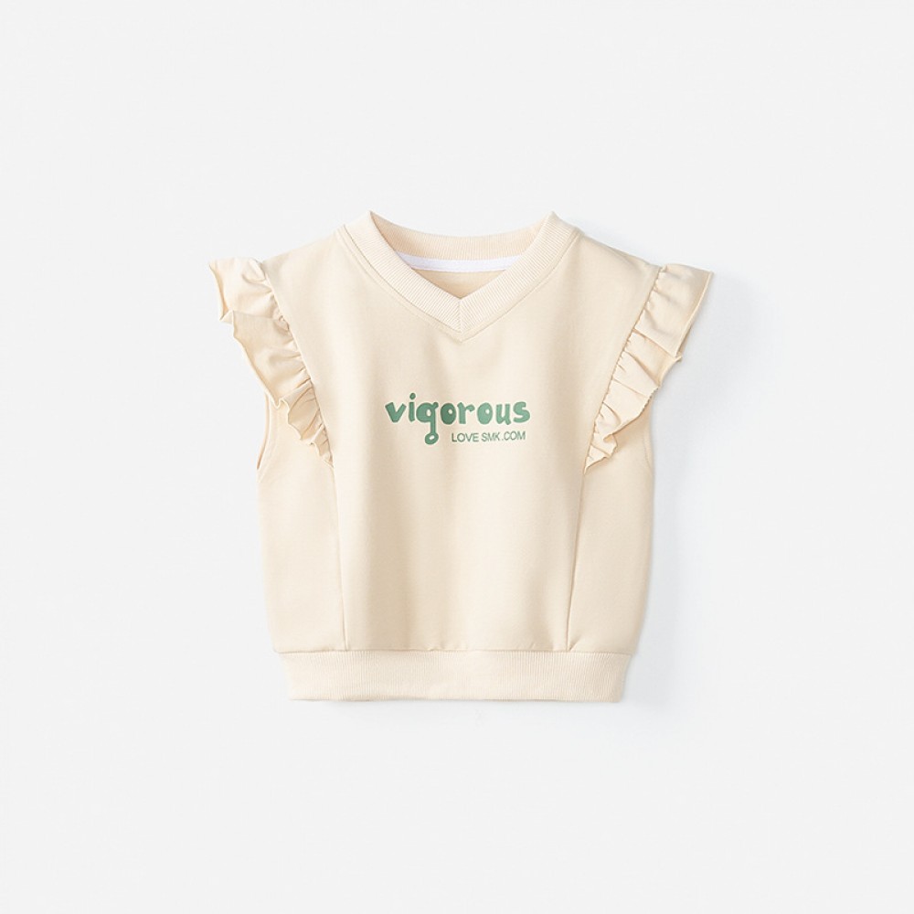 Spring new children's clothing children's vest fresh letter printing girls lace pullover vest