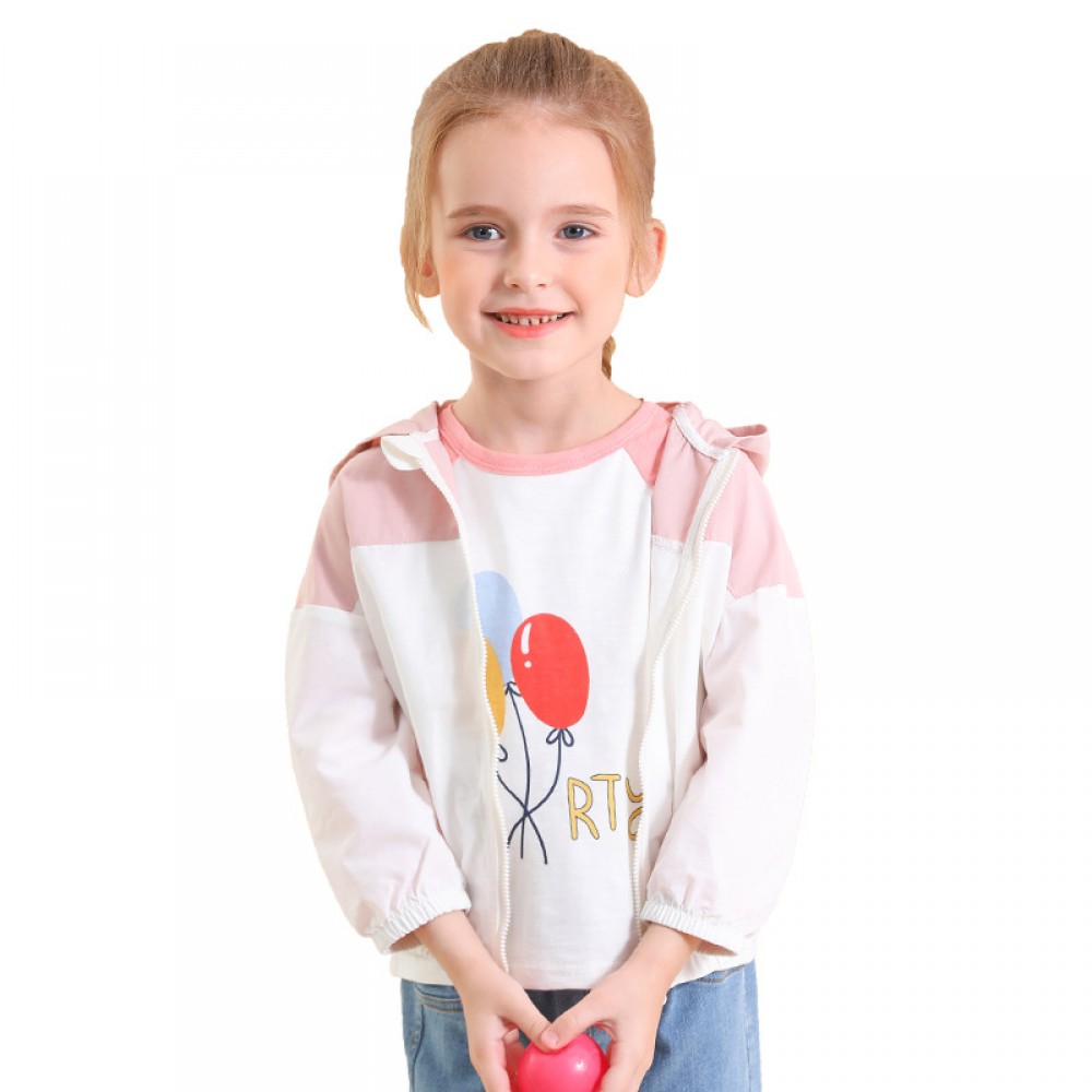 Spring new children's jacket children's clothing cartoon girl cute little ear stitching hooded jacket
