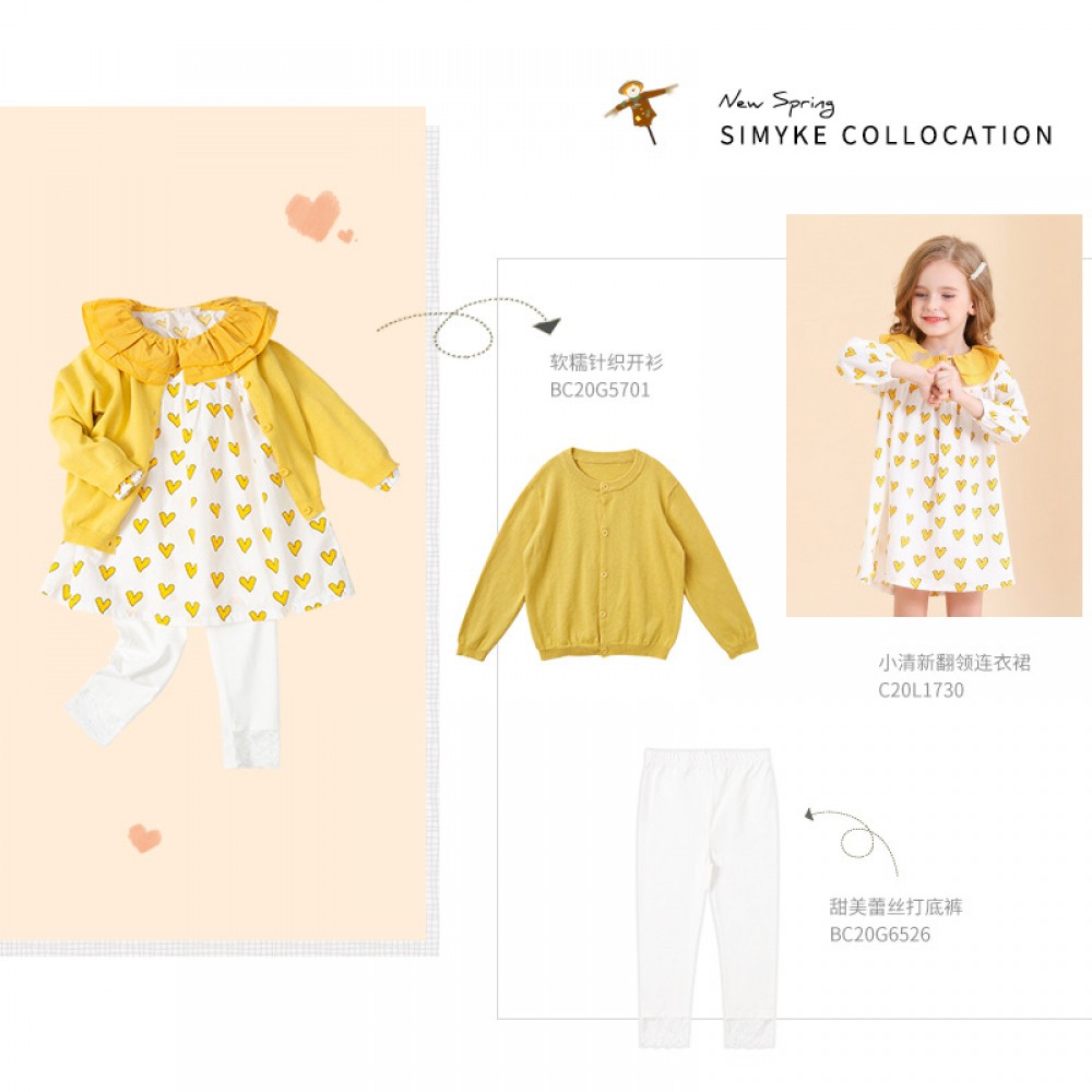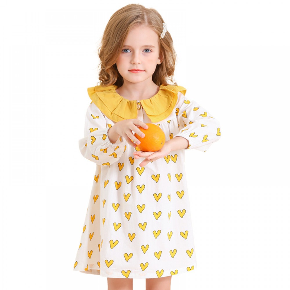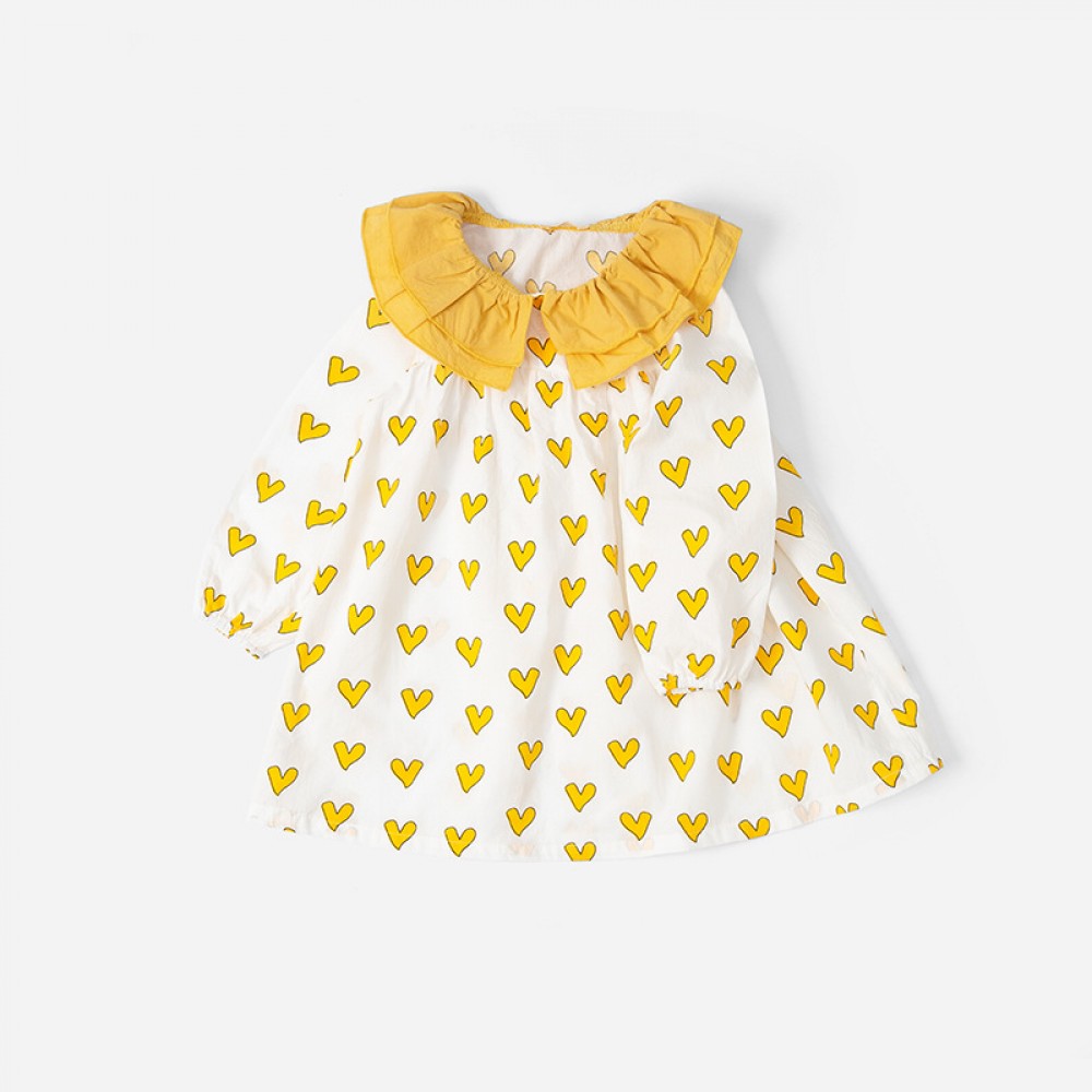 Spring new children's skirt children's clothing spring and autumn double-layer doll lapel love printing girl dress